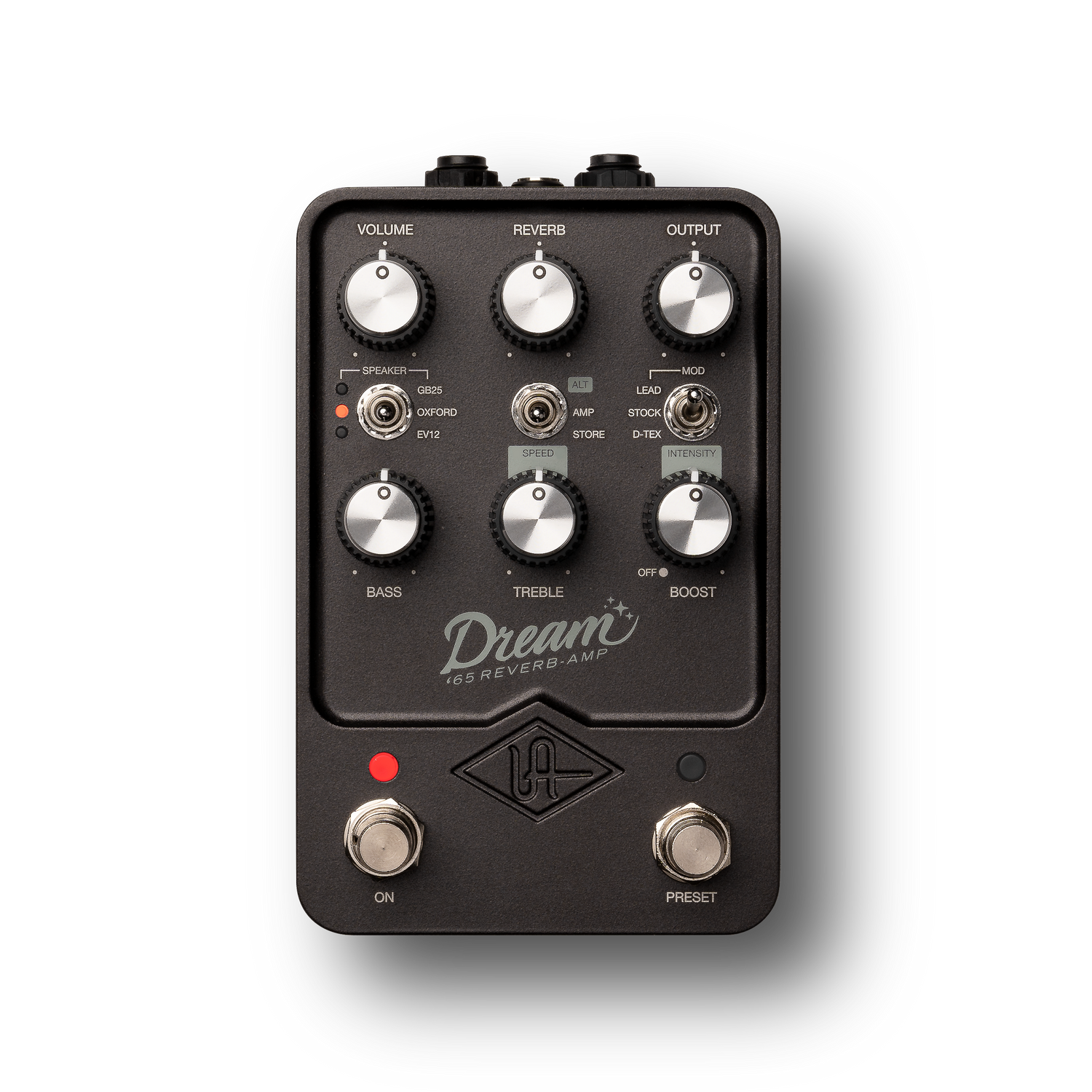 The UAFX Dream '65 Reverb Amp pedal gives you the essential American tube amp used by artists and producers for 60 years, ranging from Muddy Waters to The Beatles to Mac Demarco. Built on powerful dual-engine processing and world-class UAD modeling, Dream '65 delivers bold cleans, sweet breakup, and divine spring reverb and vibrato.