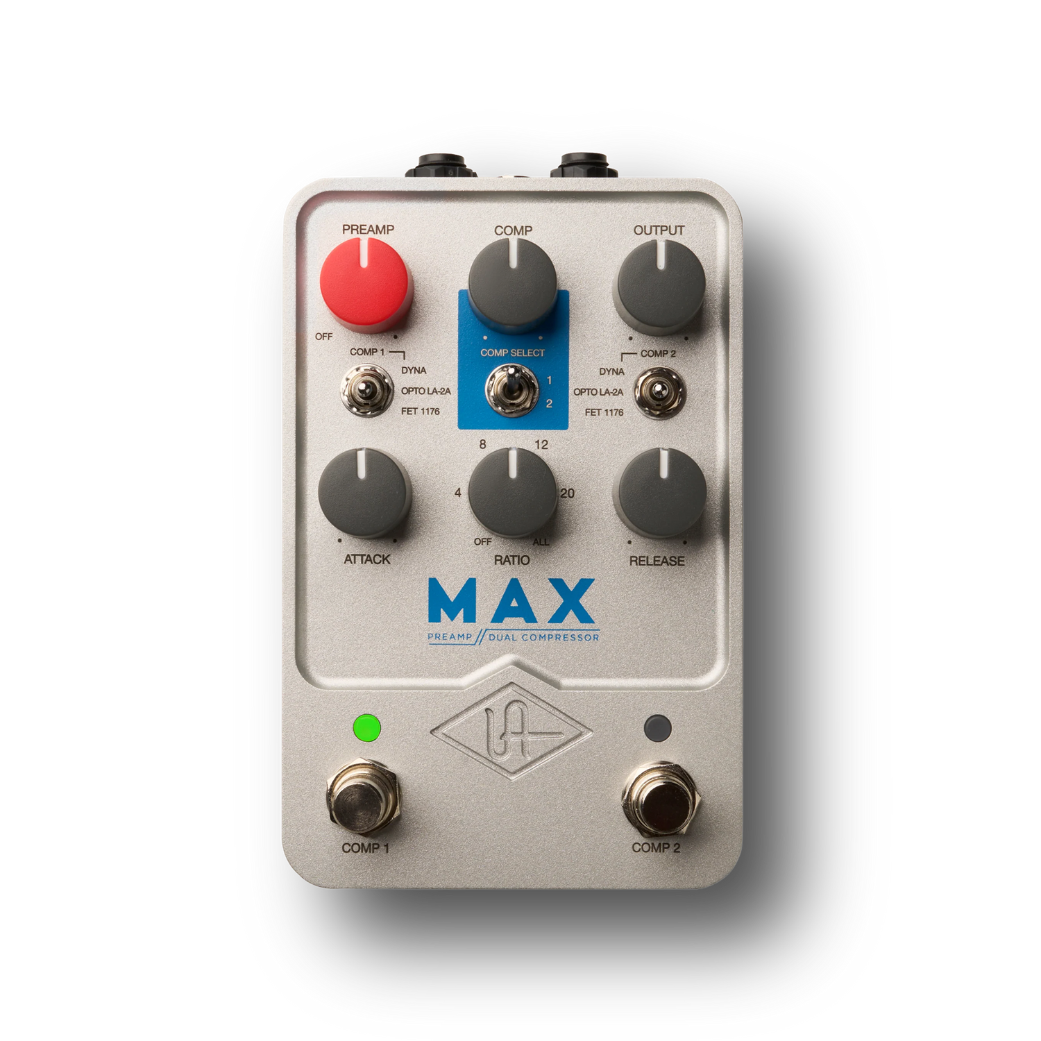 Built upon award-winning UAFX dual-engine processing and a burning desire for the ultimate in sonic legitimacy, Max Preamp & Dual Compressor puts the colorful sound of three legendary limiters and an iconic tube preamp, right at your feet.