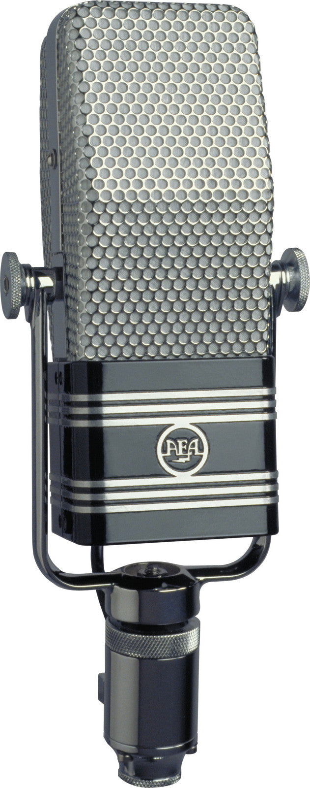 The AEA R44C has the authentic sound, feel and look of the 1936-38 RCA-44. A museum quality replica hand made by AEA using 1.8 micron ribbon material originally manufactured by RCA. Museum grade version features details such as a bronze investment cast yoke rather than the original zinc yoke (which corrode over time). The ribbon element is only 1.8 microns thick, fabricated from material originally manufactured for RCA. The Streamline Moderne "radio" finish (black with satin accents) is standard. R44C parts are also interchangeable with the original RCA 44B and BX. The microphone package includes a three-meter cloth covered Accusound Silver Studio Pro cable, a zippered canvas bag, and AEA 44VC vertical case for proper shipping and storage.