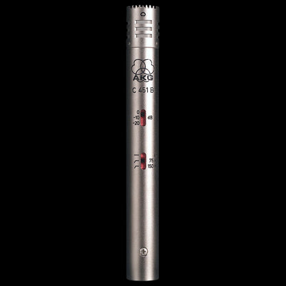 The predecessor to the AKG C 451 B microphone was the classic C 451 EB + CK1 studio mic that was a bestseller discontinued in '93. The C 451 B mic provides identical acoustical behavior to the CK1, with dramatically improved specs. It features a precise, nearly frequency-independent cardioid pattern, a transformerless output stage, selectable 10dB and 20dB preattenuation pads, and switchable high-pass filter. Operates on phantom power. AKG includes a stand adapter and windscreen with the C 451 B microphone. 3-year warranty.
