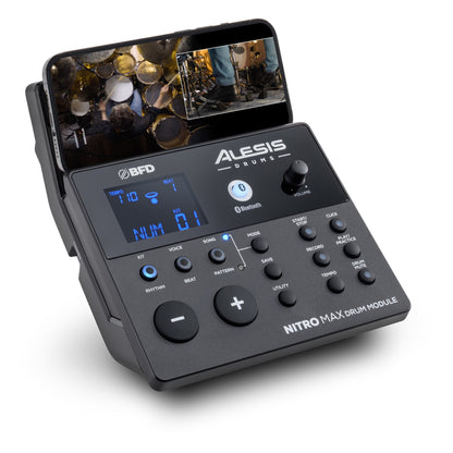 Nitro Max raises the bar for both beginner and more advanced drummers, delivering an authentic playing experience with ultra-quiet Alesis mesh drum heads, all in a compact design. Featuring 32 different kits from the renowned BFD drum sample library, Nitro Max offers seamless play along with music streaming services via Bluetooth, a host of built-in learning features, and 3-months of Drumeo for unlimited lessons with the world’s best instructors.