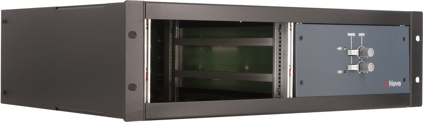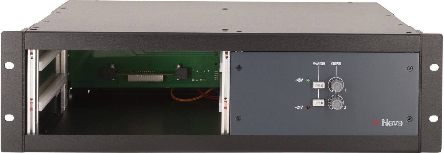 Authentic Neve rack holds 2x 1073/1084 style modules. 2 slots. Includes PSU,V48,Gain Control.