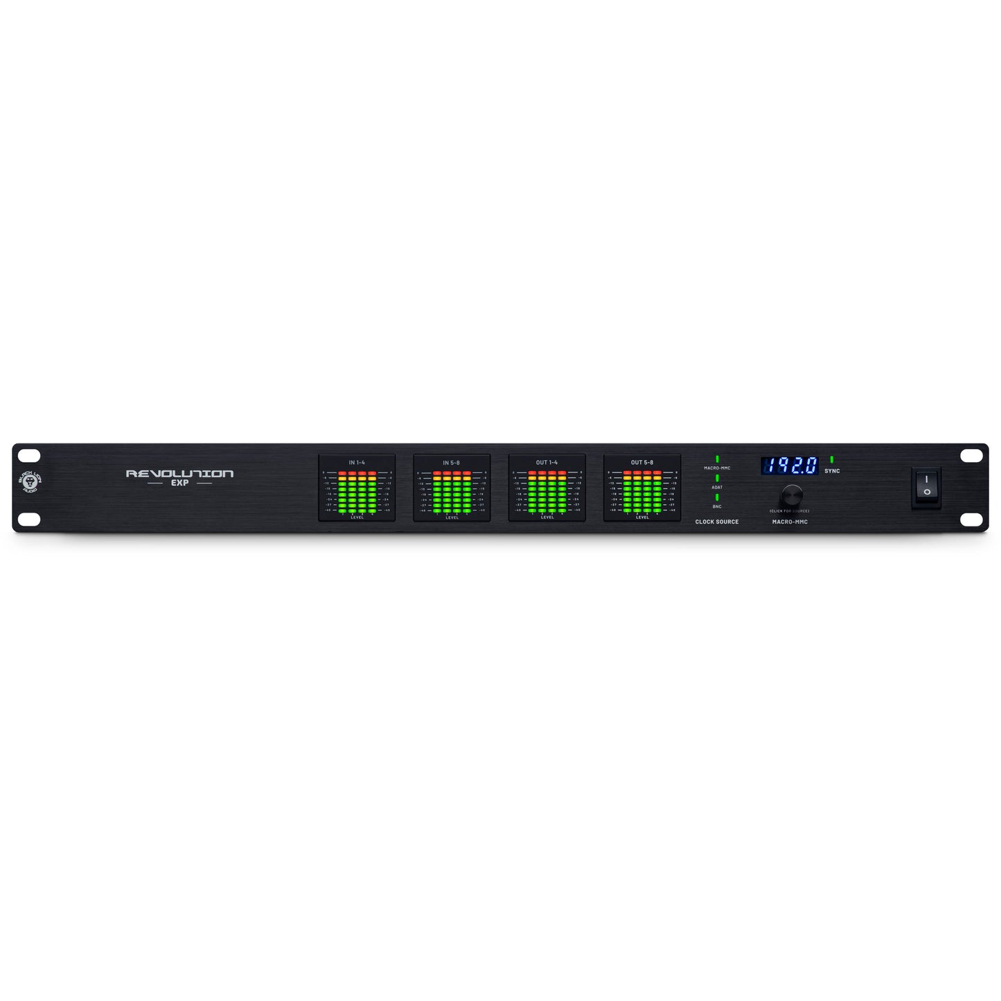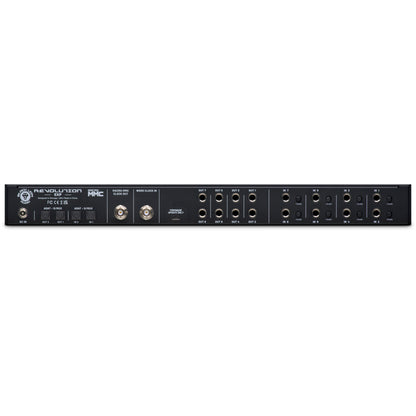The Macro-MMC (Master Music Clock) in Revolution 6x6 was developed from our experience creating dedicated word clocks, as well as modifying many embedded clocks found in other recording interfaces. Macro-MMC ensures the best possible performance from its converters, but also allows you to connect external gear via the BNC connections for maximum sync and ultra-low jitter — meaning any devices synced via Macro-MMC are communicating as accurately as possible to minimize the phase distortions that can muddy your high-end and dull your transients.
