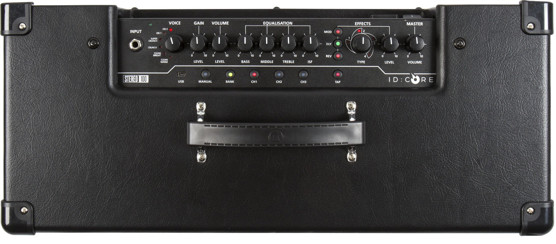 The Backstar ID:Core is a 2x50W guitar amplifier with incredible tone and flexibility. 2 x 10” speakers deliver a super wide stereo playing experience. The Voice control has six different settings – Clean Warm, Clean Bright, Crunch, Super Crunch, OD 1, OD 2. Almost any tone is achievable with the ID:Core 100, dial in the exact tone you’re thinking of! The effects section delivers studio quality modulation, delay and reverb effects, and also features a built in stereo effects loop!