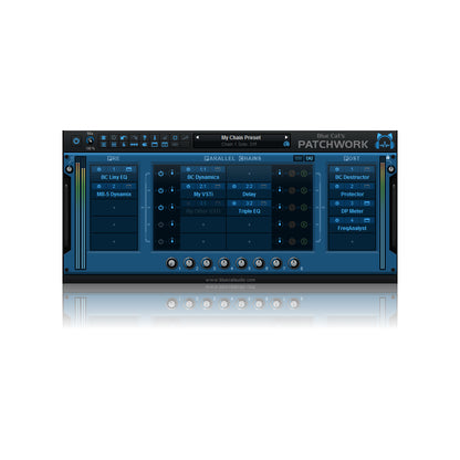 Blue Cat's PatchWork is a universal plug-ins patchbay that can host up to 64 VST, VST3 or Audio Unit plug-ins into any Digital Audio Workstation (DAW) in one instance.