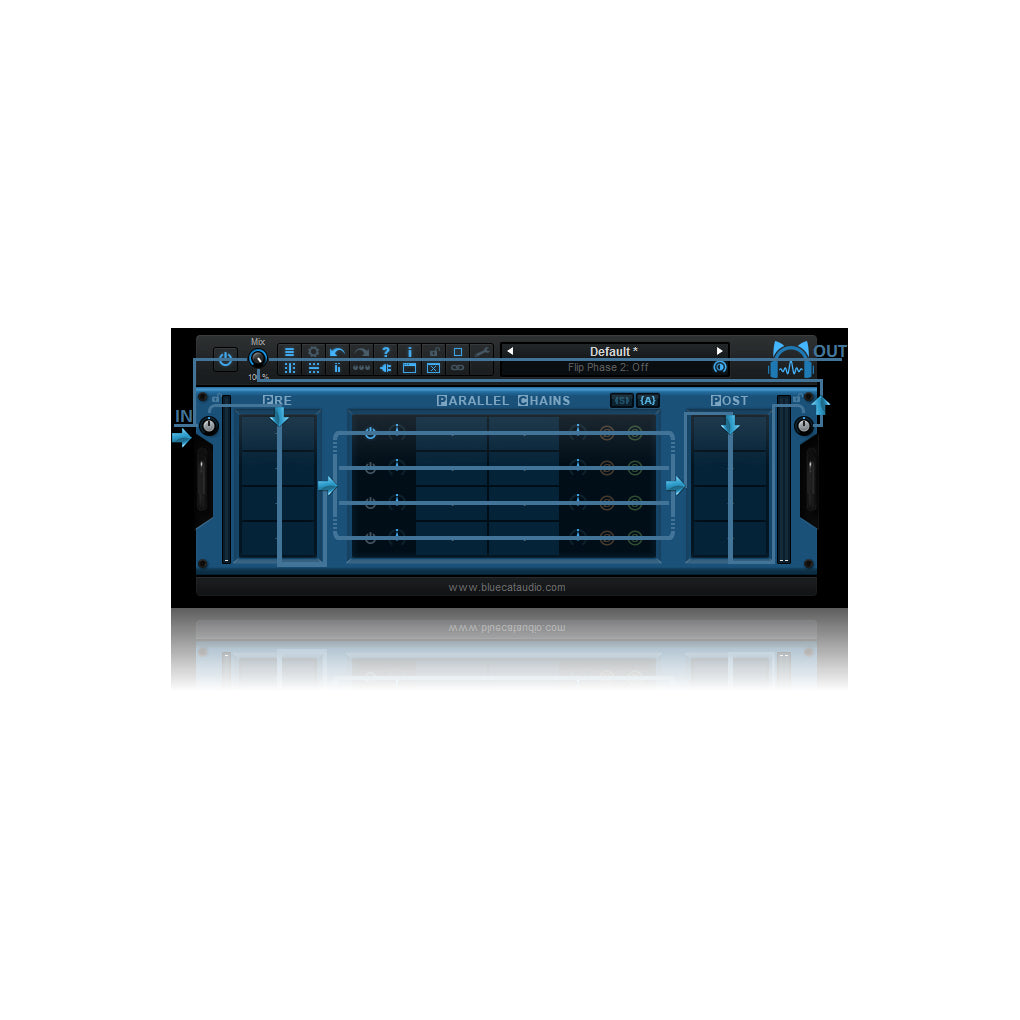 - Parallel processing made easy: up to 8 parallel plug-ins chains, with phase flip, solo and gain controls.