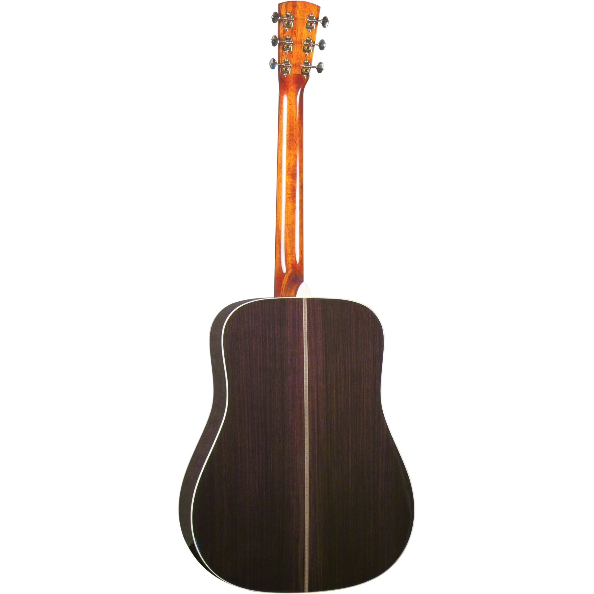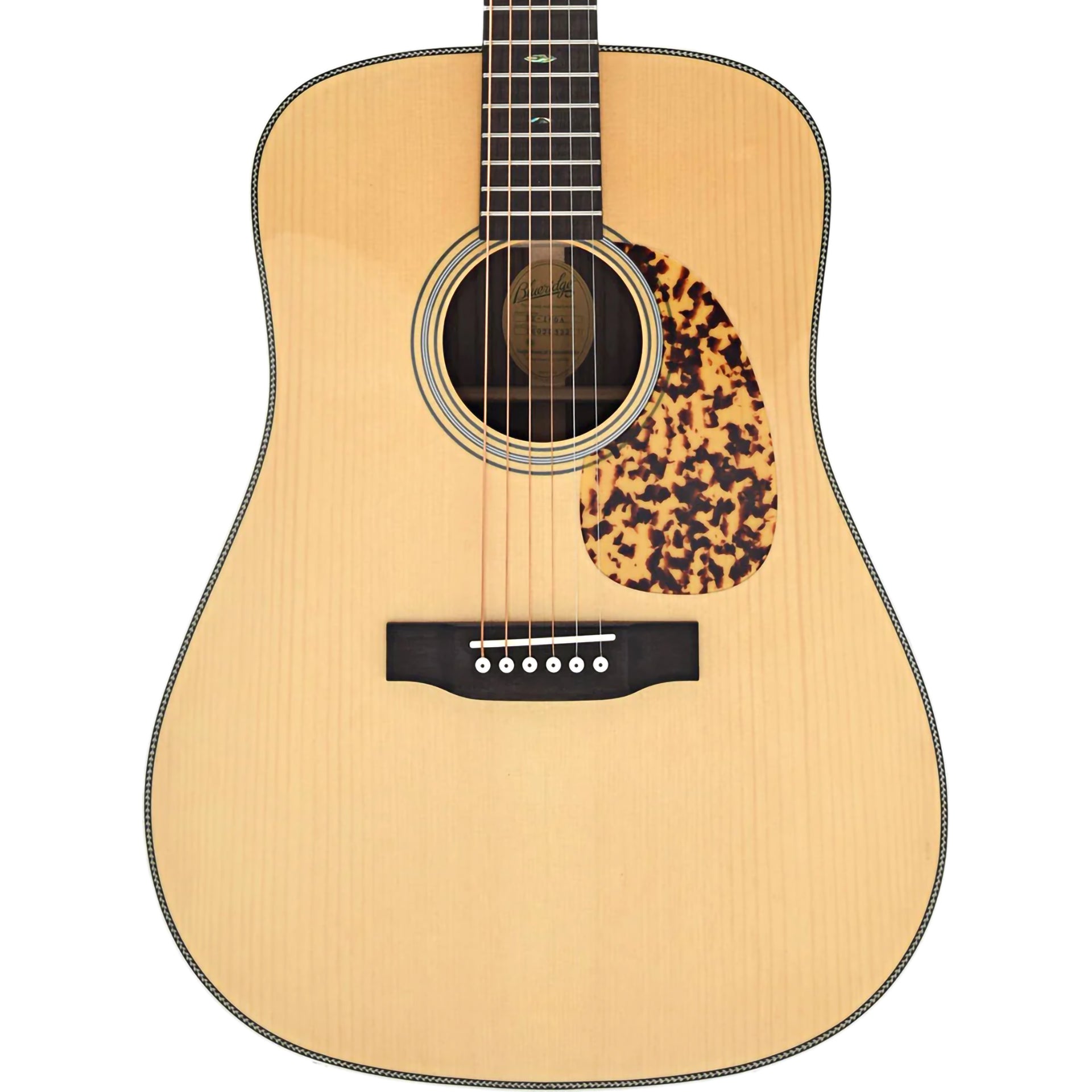 Inspired by pre-war "Herringbone" dreadnoughts, this Custom BR-160A great sound and great looks are just part of what will make it one of the more desirable vintage-style acoustic guitars in production today. It starts with a solid Adirondack spruce top and hand-carved parabolic top braces that respect the pre-war forward X-pattern. Indian rosewood back and sides add a strong bass to the spruce top's already full sound. The slim mahogany neck is comfortable and features a dovetail neck joint and adjustable truss rod. Beautiful appointments include a Dalmatian style pickguard and mother-of-pearl neck and headstock inlays.