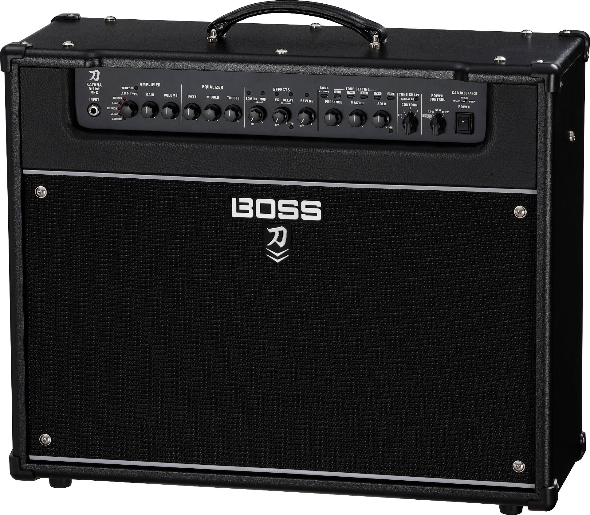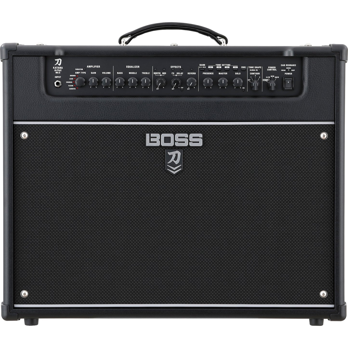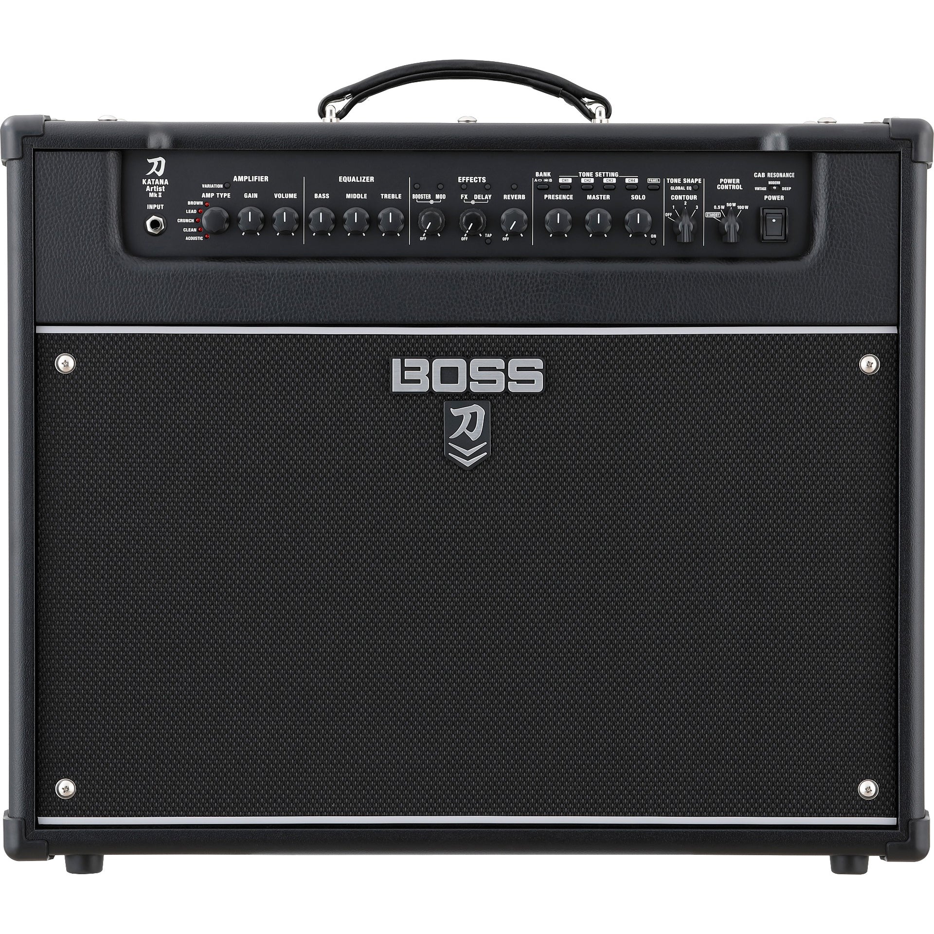 A key element to the Katana-Artist MkII’s powerful sound is the 12-inch Waza speaker, developed by BOSS to deliver the wide dynamic response, smooth midrange, and rich harmonic overtones of the benchmark 25-watt British stack speaker from the 1960s. Through detailed analysis of original speakers and careful selection of the magnet, cone material, and other elements, the Waza speaker embodies the full mojo of this legendary speaker while boosting power capacity to 100 watts.