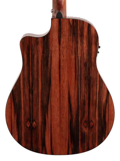 A Dreadnought Body with Ebony Back and Sides, Engelmann Spruce Top, and Fishman Electronics!