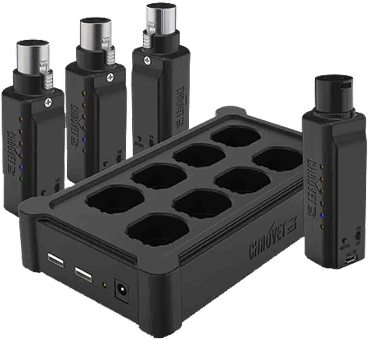 Make any DMX-compatible light wireless! The wonders of wireless DMX control have arrived to previously non-wireless lights with D-Fi XLR. This cutting-edge technology provides instant wireless communication through compact battery-powered wireless D-Fi receiver or transmitter units that plug directly into the XLR port of DMX-compatible lights. Contact pins charge all D-Fi XLRs without the need for any cables. The D-Fi XLR Pack includes 1 transmitter, 3 receivers and 1 multi-charger. The multi-charger simultaneously charges up to 8 D-Fi XLRs (additional units sold separately). D-Fi XLR Pack even has 2 additional USB ports to charge additional devices.