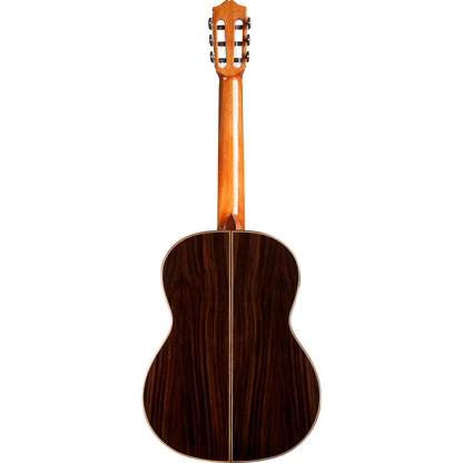 The C7 is a handmade traditional nylon-string acoustic, featuring a solid Canadian cedar or European spruce top. A step up from the C5, the C7 is built with Indian rosewood back and sides. It also has a traditional style hand-inlaid wooden rosette and a rosewood binding, bridge and fingerboard. A Cordoba gig bag is included.