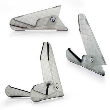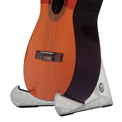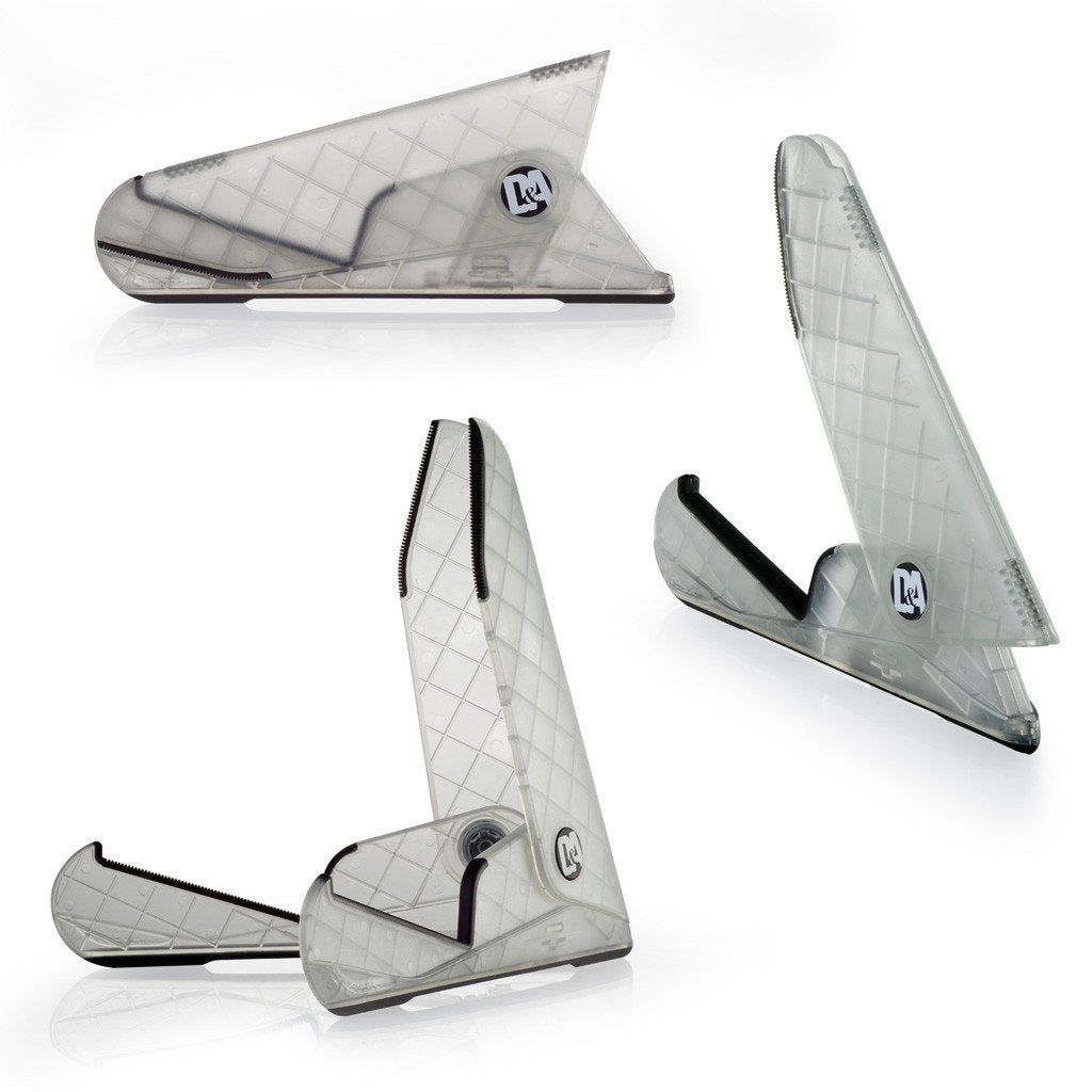 A BEST OF CLASS guitar accessory with its compact size, portability, durable construction, and weighing in at a little more than the average guitar cable, the D&A ICESTAND Acoustic (clear version of GIGSTAND) is one of the most unique innovations developed in guitar stands and accessories. The sleek design holds most acoustic guitars, collapses in two simple steps and can be carried in a gig bag or even in the back pocket of your jeans. Perfect when on the road or off, it unfolds in seconds for easy access.