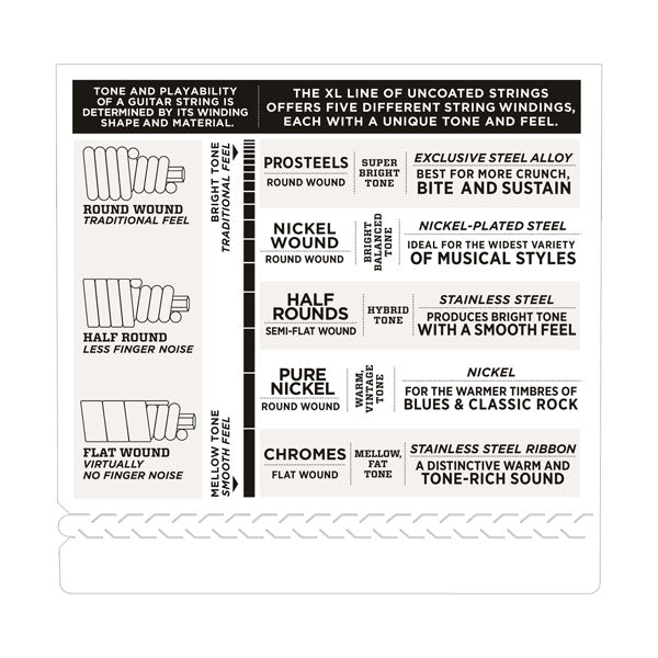 - Round wound with nickelplated steel for a distinctive bright tone with clear fundamentals