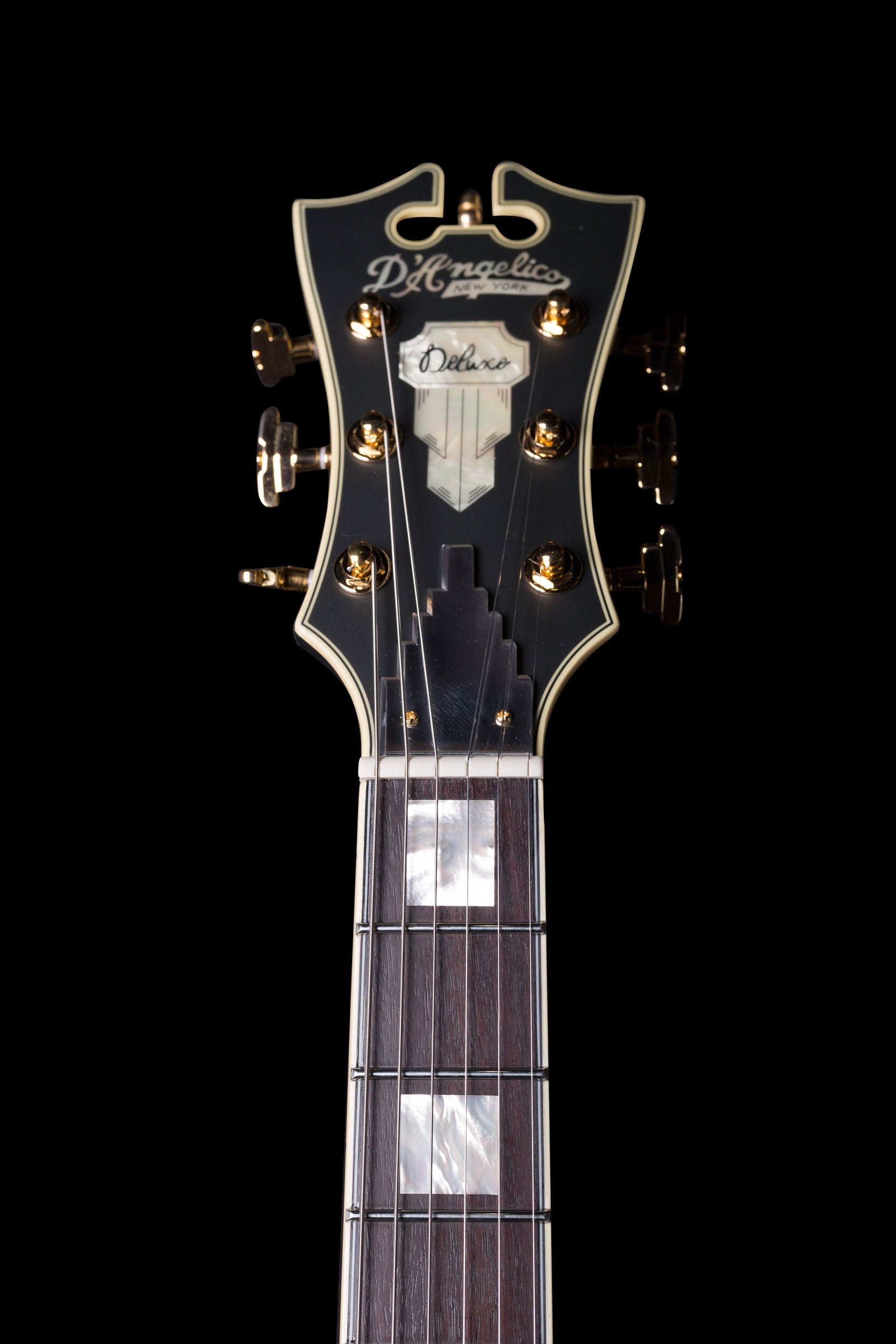 Masterfully crafted, the Deluxe DC is a standout double-cutaway semi-hollow. Featuring all-new DA-59 pickups co-designed with Seymour Duncan, a six-way toggle switch, and new Jescar fretwire, the DC Deluxe is strapped with upgrades. The 16-inch-wide Deluxe DC features a full center block to combat feedback and provide brightness. Its tone is crystal clear and full—and with a graphite nut, stop-bar tailpiece and locking tuners, the DC Deluxe offers flawless tuning.
