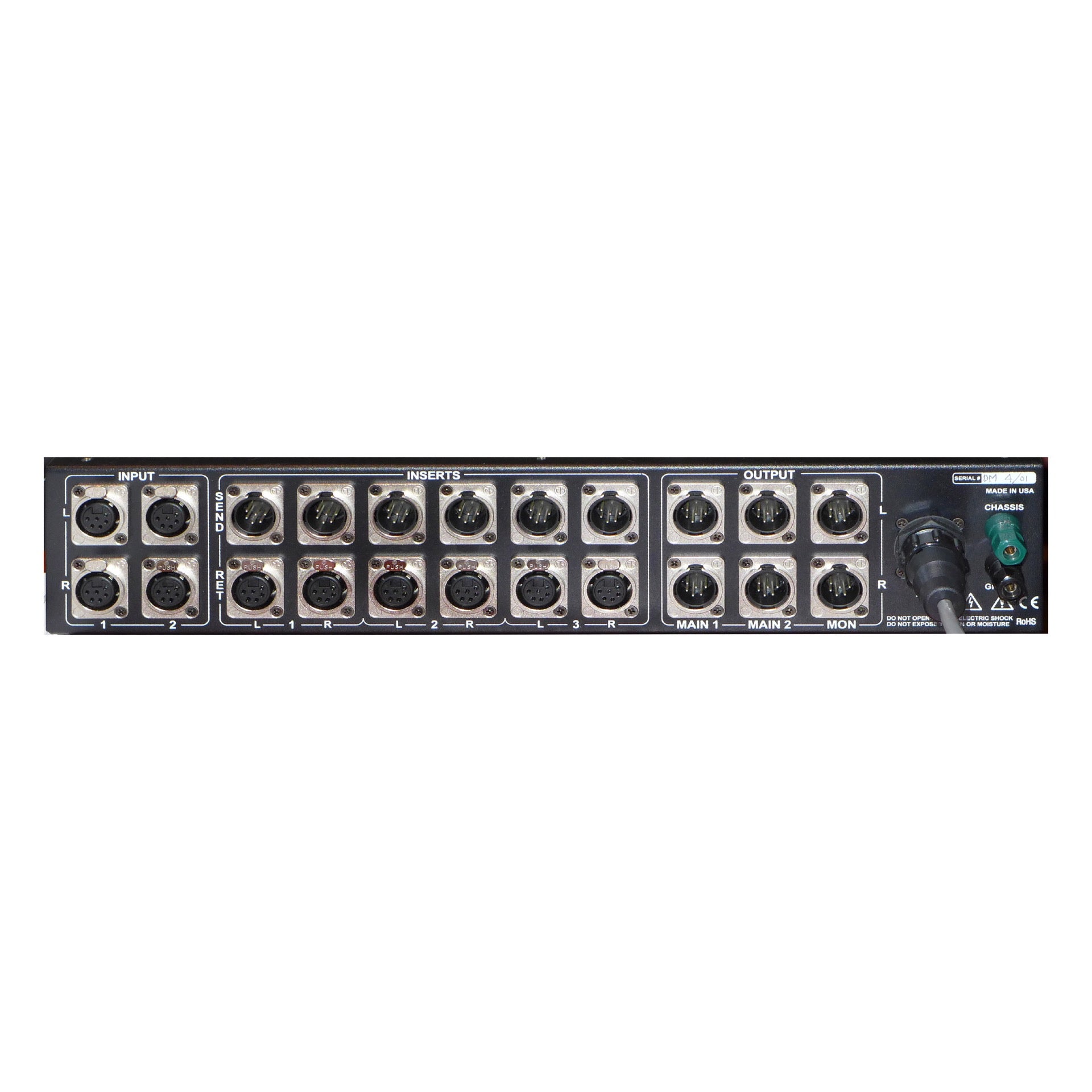 - 2 stereo inputs, 3 stereo outputs (one for monitoring)