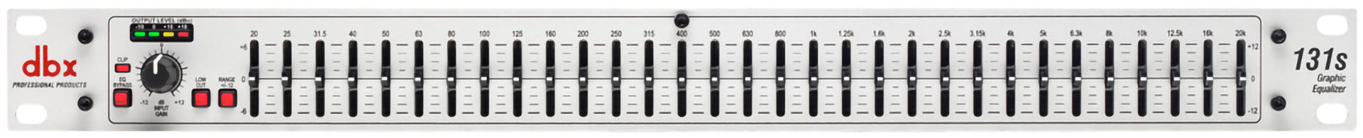 The dbx 131s includes a single 31-band channel of 1/3-octave equalization, ±12 dB input gain, switchable ±6 dB or ±12 dB boost/cut range, 20mm nonconductive sliders, an intuitive user interface, and output level metering. From its extended 10Hz to 50kHz frequency response and 110 dB dynamic range to the quality componentry and meticulous attention to detail, the 131s offers exceptional sound and rugged reliability that guarantees you will always sound your best.