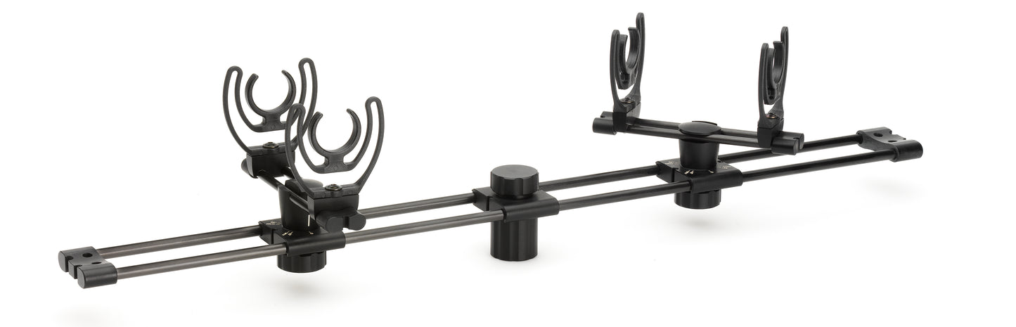 The lightweight SBS0400 stereo boom with shock mounted microphone holders addresses the need for quick, precise and repeatable ways to switch between AB, XY, ORTF, and DIN stereo principles.