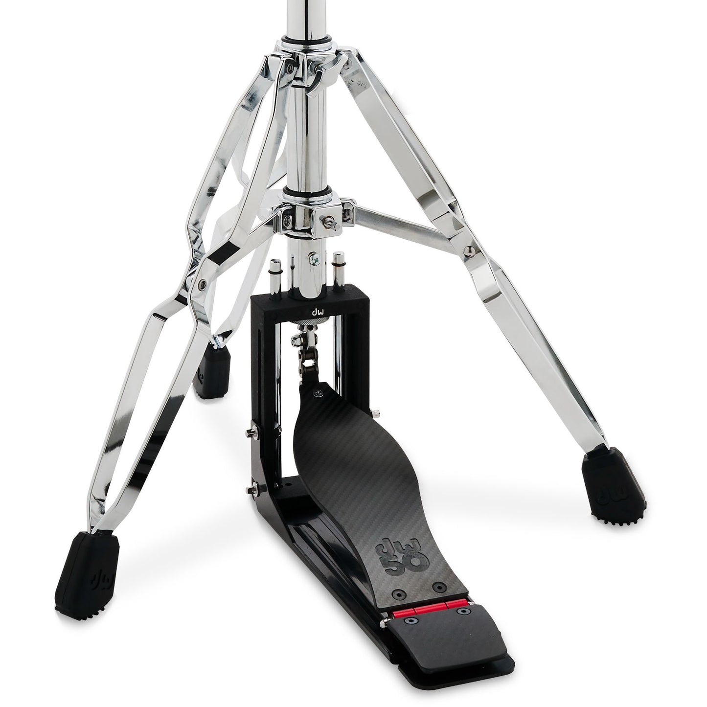 The limited-edition DW 50th Anniversary Carbon Fiber 3-Leg Hi-Hat Stand incorporates a DW50 signature logo on a carbon fiber footboard and heel plate. Designed to match the DW50 carbon fiber single and double pedals, this chain-driven stand is also equipped with a Delta Ball Bearing and a lateral cymbal seat adjustment to adjust the angle of the bottom cymbal. This hi-hat stands delivers all the speed, precision, and durability you expect from 5000 Series hardware — at a reduced weight.