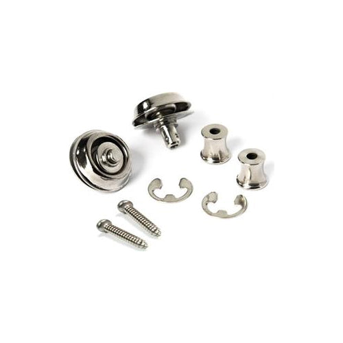 Set adapts to instrument by replacing existing strap pins/screws with special Straplok System button/screws.