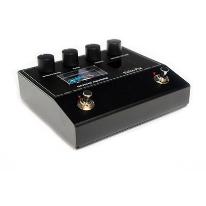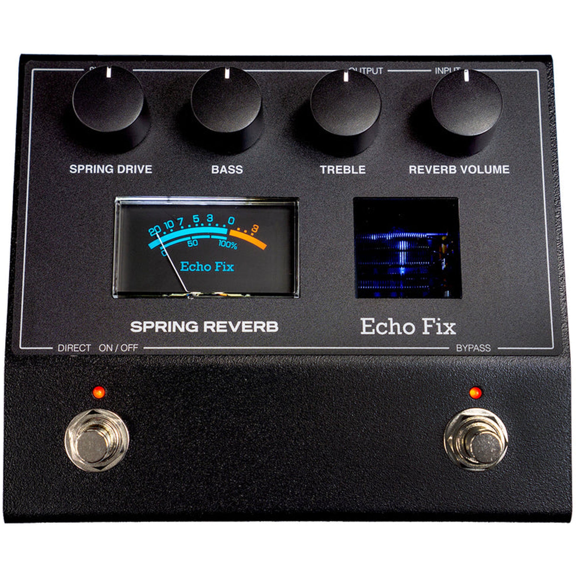 The Echo Fix EF-P2 is a real Spring Reverb pedal that packs a huge sound into a small enclosure. The EF-P2 features a three-spring reverb tank, adjustable Spring Drive, Bass / Treble EQ controls, and Reverb Volume control. With a footswitch for reverb bypass and also a direct signal mute footswitch, the EF-P2 can also be used as an outboard effect in recording studios. The EF-P2 can accept audio signal from synths and other audio devices, not just guitar.