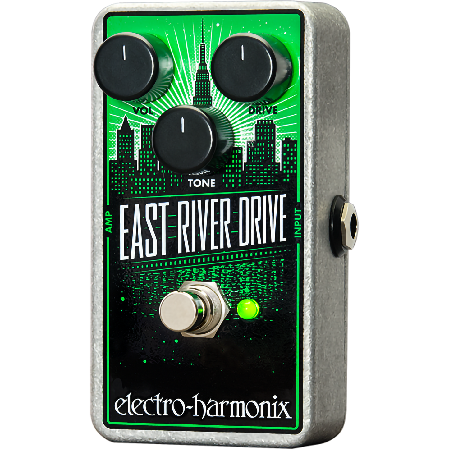 The Electro Harmonix East River Drive True Bypass Overdrive Pedal that represents the boldness of NYC. Based on the classic JRC4558 overdrive, Electro Harmonix's version adds edge and gain without compromising any tone. The volume and drive functions take it from sweet to scalding and the tone function allows you to dial in just the right amount of bite to cut through the mix.