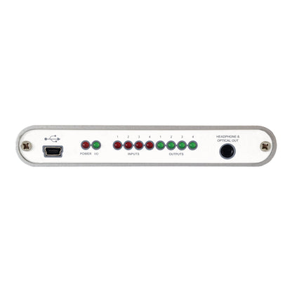 Beside standard recording and playback functionality, MAYA44 USB provides everything that is needed for professional music production. In its compact aluminium case MAYA44 USB+ provides 4 analog input and 4 analog output channels with RCA connectors and a combined optical S/PDIF digital output / stereo headphone output. The headphone output provides a separate stereo output signal, making it perfect for DJs.