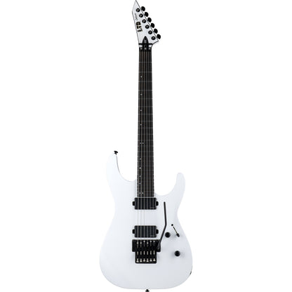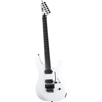 Guitars in the LTD 1000 Series are designed to offer the tone, feel, looks, and quality that working professional musicians need in an instrument. The M-1000 Snow White updates one of the coolest guitars in the M Series with an even more outstanding design, featuring new neck-thru construction and a set of direct-mount Fishman Fluence Modern Humbuckers (alnico in the neck position, ceramic in the bridge), with a push-pull control to activate each pickup’s second voicing. This guitar also features a comfortable alder body, a satin finish on the back of its extra-thin U-shaped neck, and a compound neck radius. Its Macassar ebony fingerboard has black binding, 24 extra-jumbo stainless steel frets, and offset mother-of-pearl dot inlays. Components on the M-1000 Snow White include Grover tuners and a Floyd Rose 1000SE bridge with stainless steel screws.