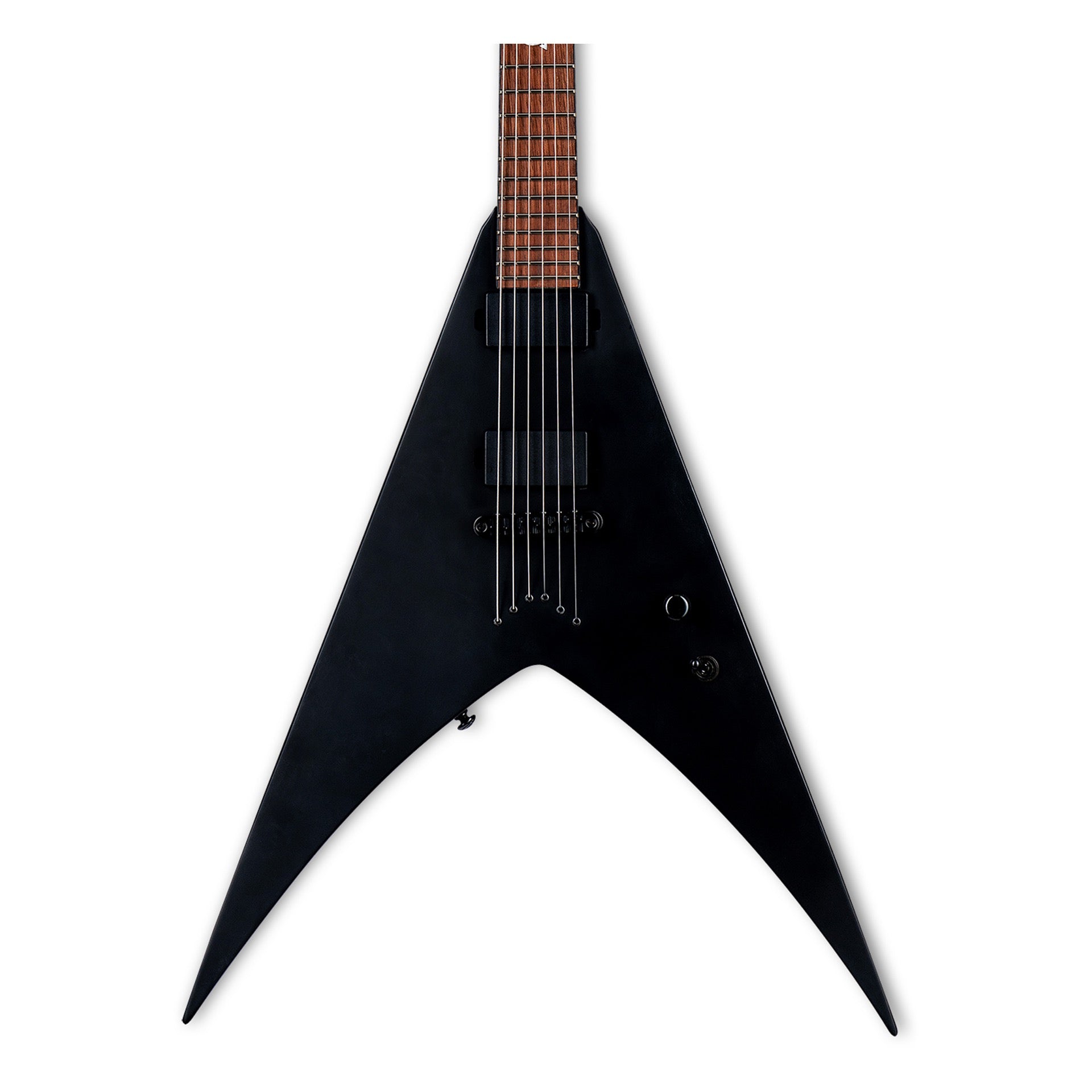 • Symmetrical V-Shaped Body: Mahogany body with a bolt-on construction at 25.5” scale for enhanced sustain and resonance.