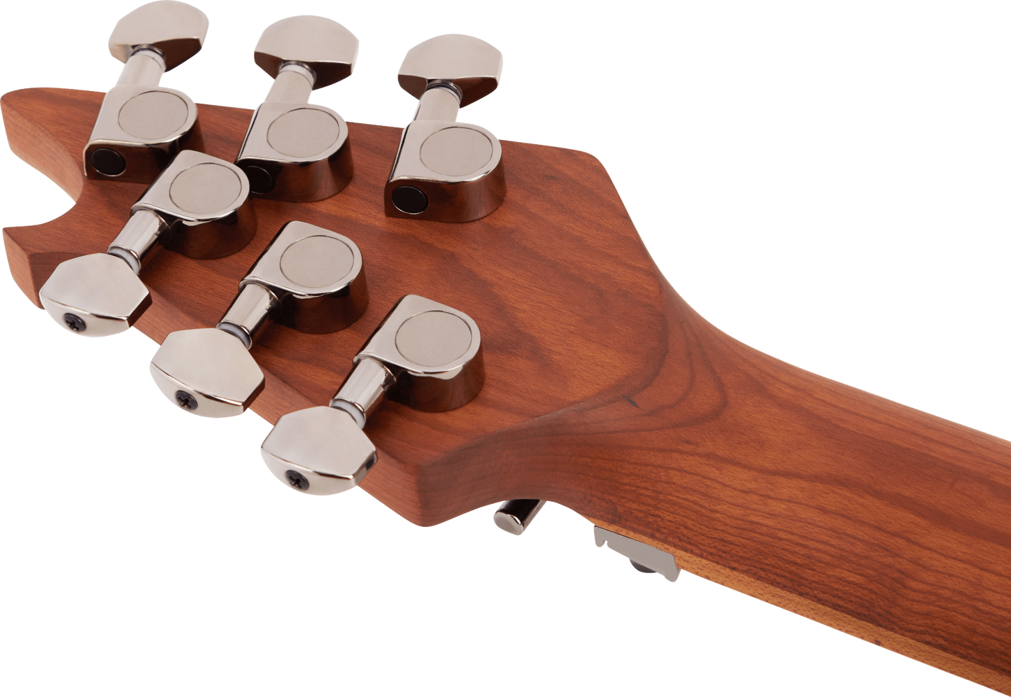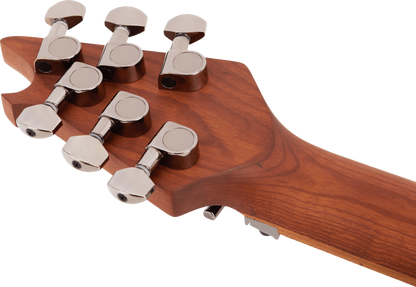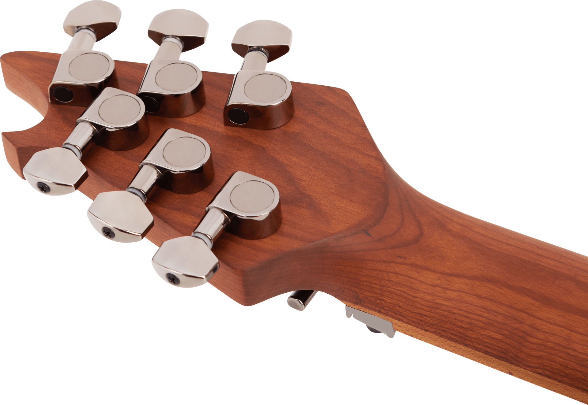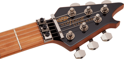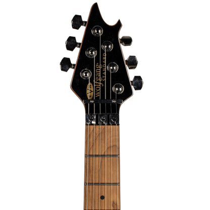 Offering many of the blazing features as its more expensive brethren, this axe features a basswood body with special “comfort cut” forearm contour for maximum playing ease, along with attractive masked-off natural body binding and an elegant quilt maple top. Its bolt-on baked maple neck with graphite-reinforcement rods holds strong against the ravages of temperature and humidity, while a conveniently located spoke wheel at the base of the neck makes for quick and painless truss rod adjustments. Designed for comfortable playability and speed, the Wolfgang WG Standard also features a smooth oiled finish on the back of the neck and a 12”-16” compound radius baked maple fingerboard with rolled edges, 22 jumbo frets and black dot inlays.