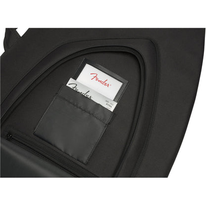 Fender's 610 Series gig bag is a stylish and affordable way to keep your electric guitar safe while traveling. Featuring our iconic asymmetrical Fender shape, its durable outer layer is constructed of tough 600 Denier polyester that protects against impacts while avoiding ripping and tearing. Its interior is filled with 10mm padding and lined with soft touch microfiber that keeps your instrument secure while preventing potential finish damage. The 610 gig bag also comes with a comfortable two-piece handle and ergonomic air mesh backpack straps with easily adjustable ladder lock buckles, so you can comfortably carry your instrument without unnecessary physical strain. Plus, the front storage pocket offers additional storage space for small accessories and a business card window.