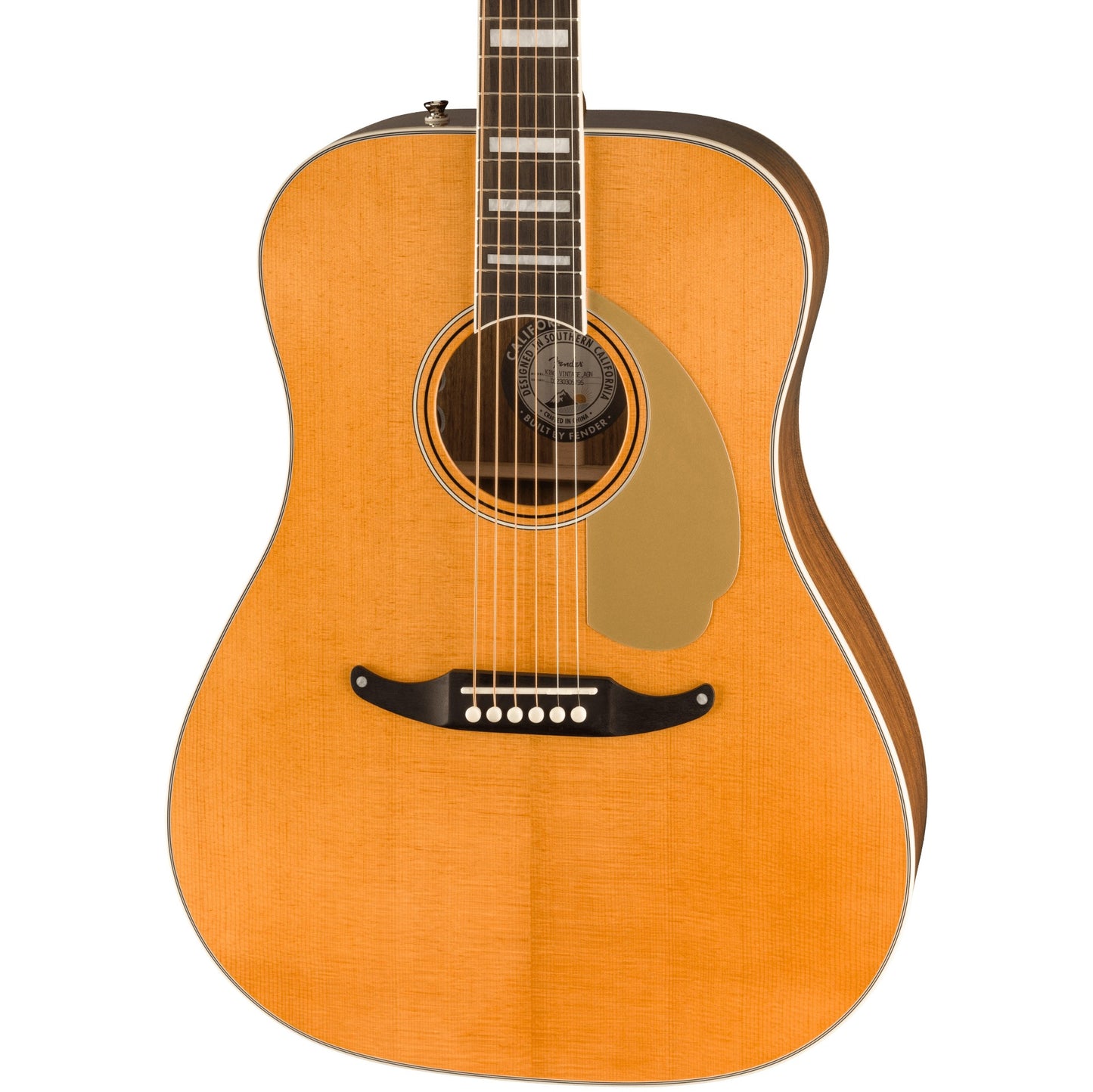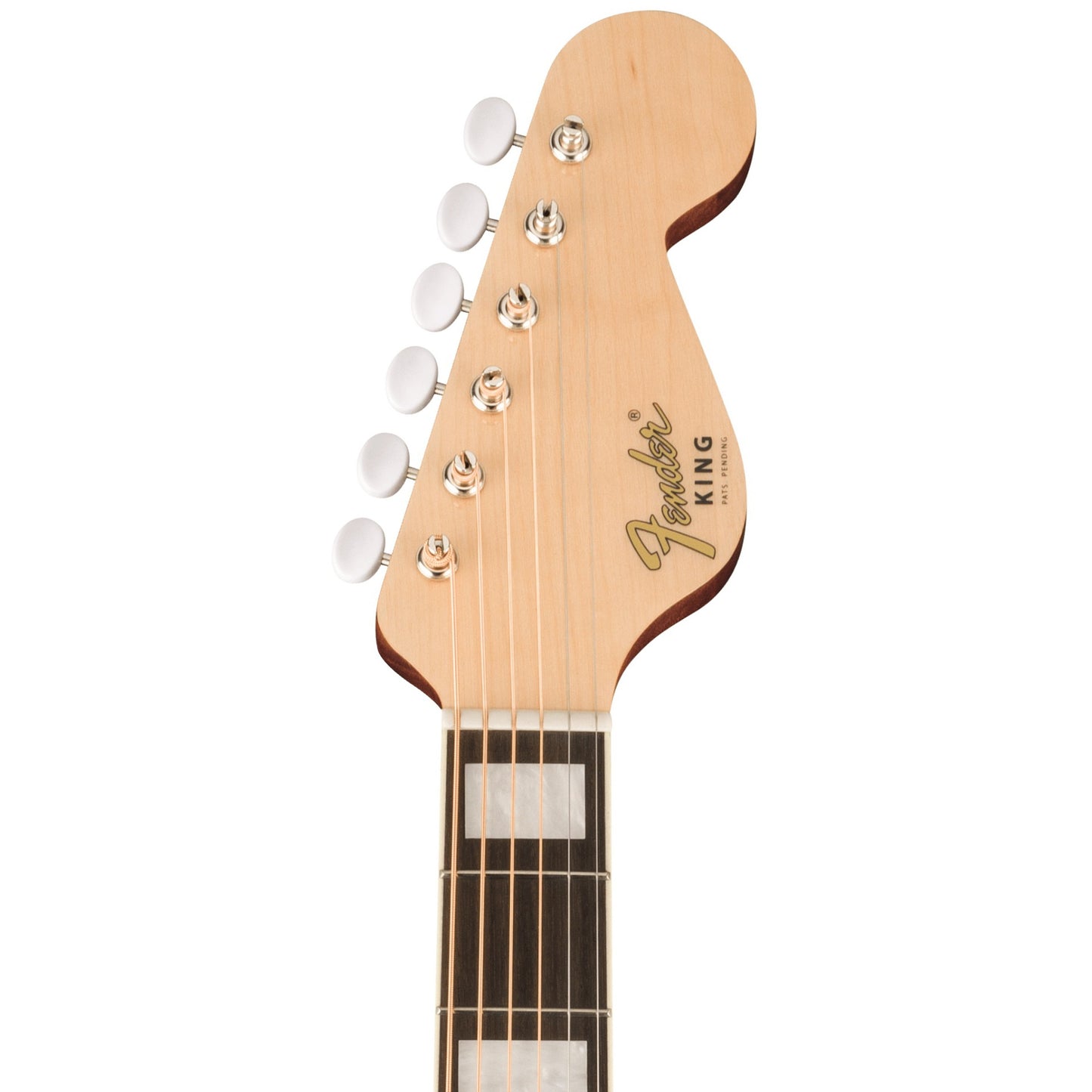 Engineered with an innovative Performance-X™ bracing pattern, the dreadnought body of the Fender California Vintage King is lightly crafted with a solid Sitka spruce top and solid ovangkol back and sides to effortlessly produce a substantial, bass-filled voice with exceptional detail, projection and volume. An ergonomic modern “V" profile was chosen for the okoume neck along with a 25.5" scale length for optimal sustain, and a tilt-back 6-in-line headstock with a maple headcap for a distinctive look born from Fender’s electric guitar DNA. Other notable details include a bound ovangkol fingerboard with pearloid block inlays for a throwback look, vintage-style tuning machines for smooth, accurate tuning, and a bone nut and saddle for superior harmonic character. Designed for the performer, the onboard Fishman® Sonitone Plus preamp system features seamless soundhole-mounted controls that blend an undersaddle piezo and internal body transducer to allow faithful and reliable reproduction of the guitar’s natural sound when plugged into an amplifier or recording device. A vintage-style hardshell case is included.