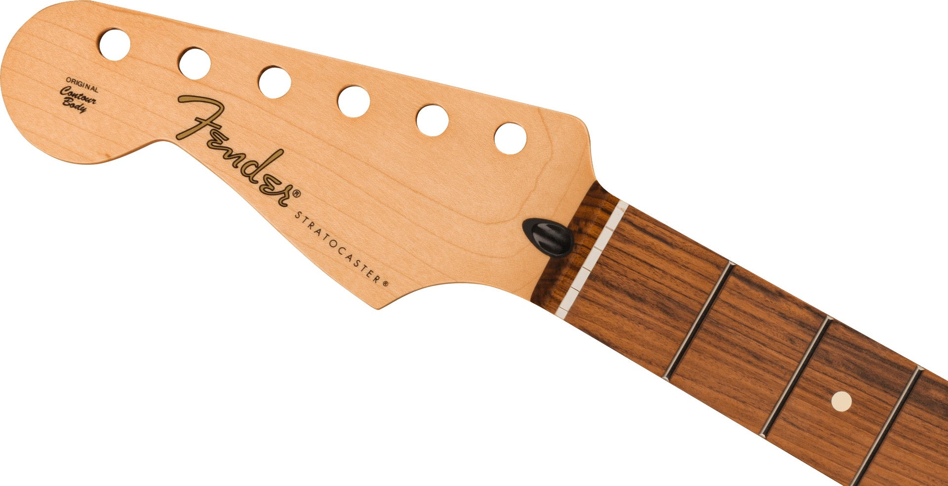 The nut is pre-slotted with "pilot" string location grooves to make spacing a breeze when performing the final string slot filing, and a satin finish on the back offers smooth playability. For true Fender authenticity, it's also serialized and stamped, with genuine "Original Contour Body" headstock decal.