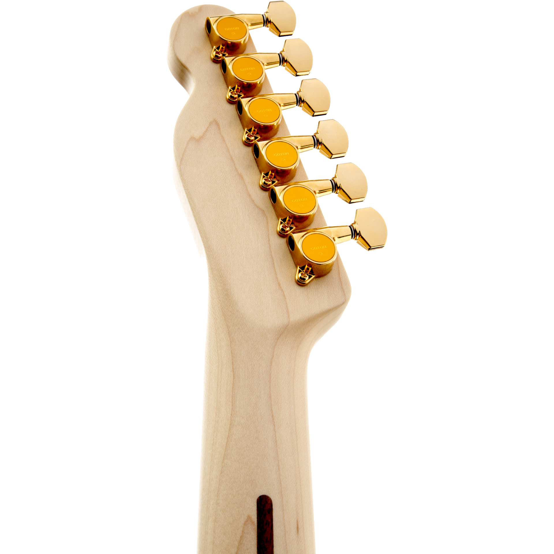 Other premium features include a satin-finish maple neck with a large "C"-shaped profile, 12"-radius maple fingerboard with 22 jumbo frets and pearloid dot inlays, three-way blade pickup switch with "barrel" tip, master volume control and rotary series/parallel switch, single-ply cream pickguard, gold six-saddle through-body Telecaster bridge, Gotoh sealed tuners and gold hardware.
