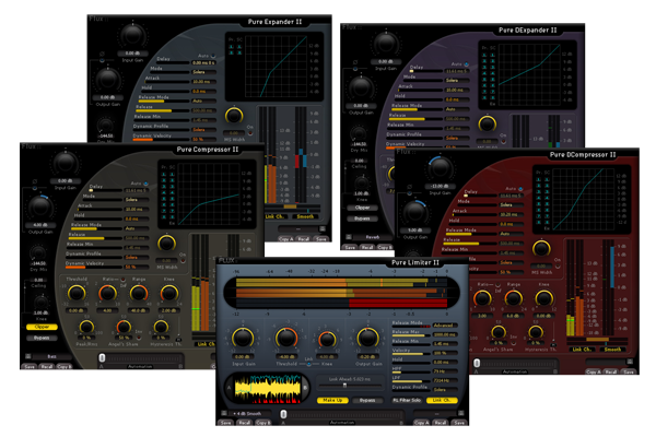 Pure Compressor is the compressor section of the Solera. It uses the exclusive Angel's Share and Hysteresis algorithms developed by FLUX:: Pure Compressor produces a wide range of compressions from ultra clean subtle compressions to classic heavy pumping ones. It's up to your artistic choices not to the technology limitations.