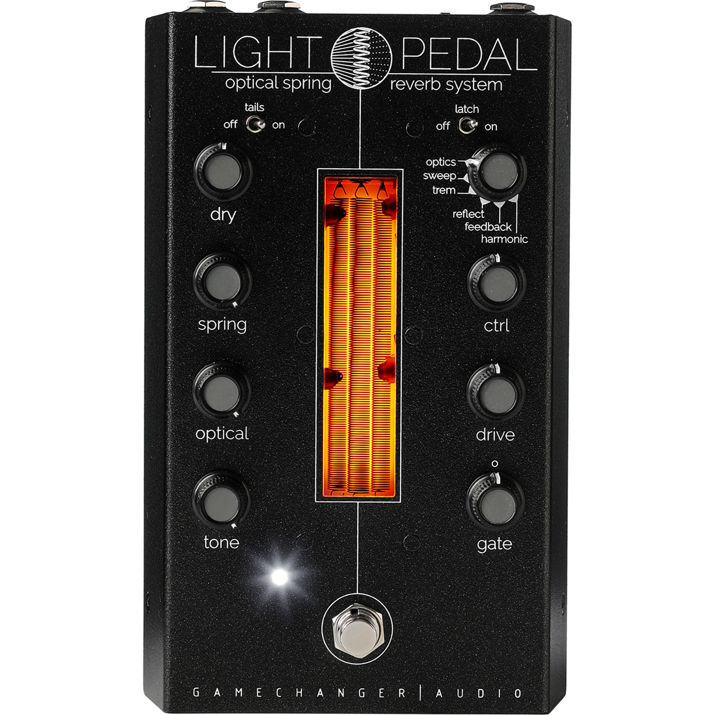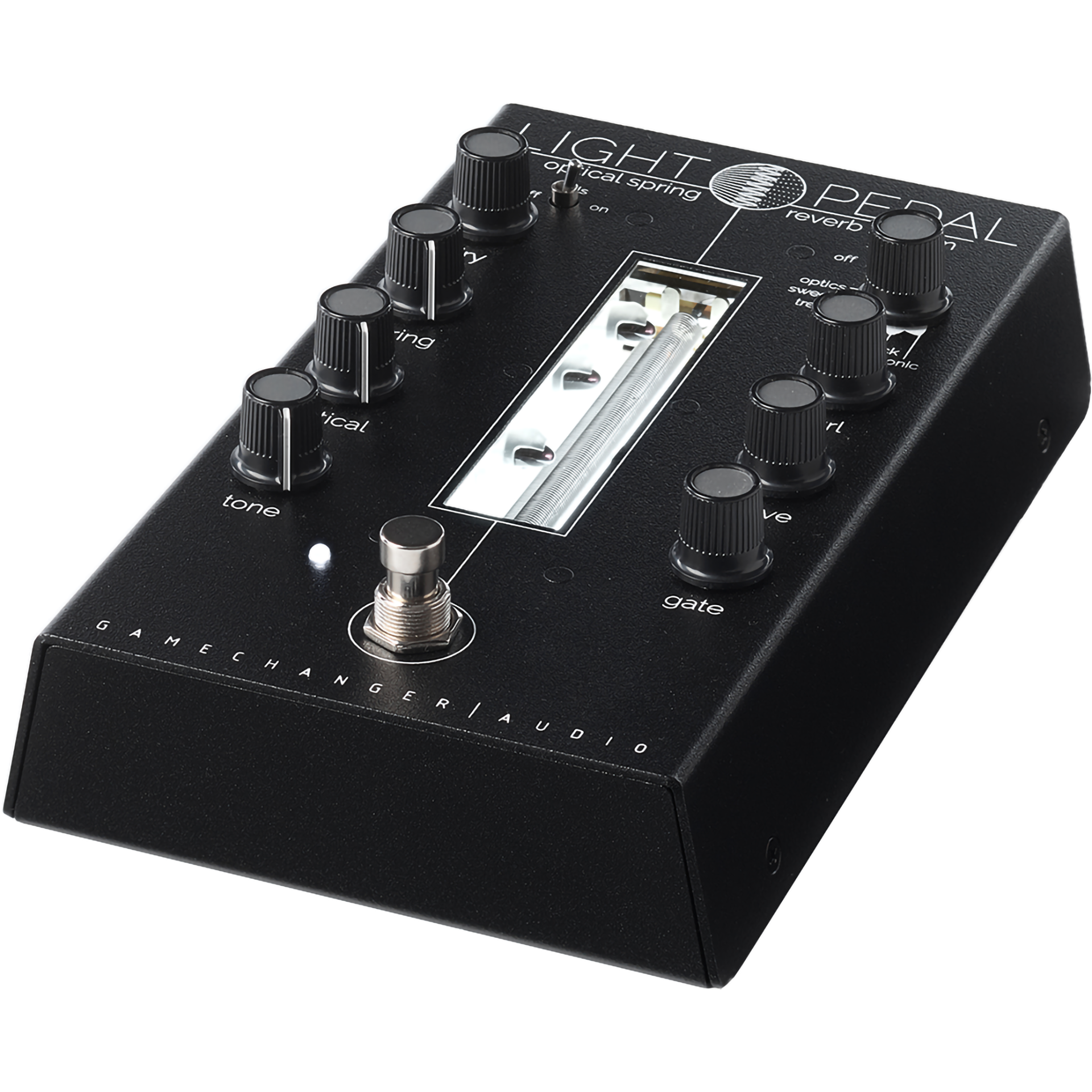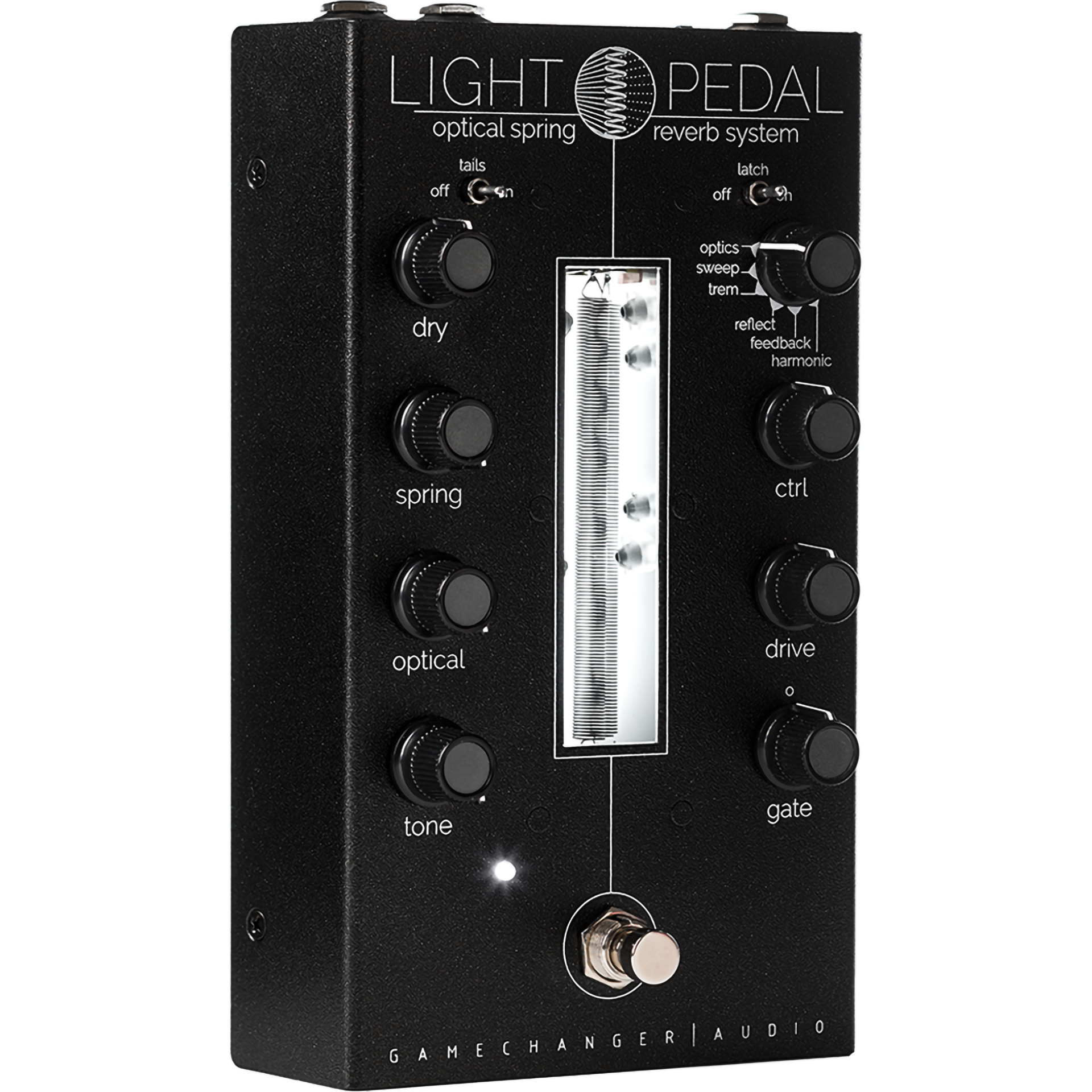 The LIGHT Pedal is the world’s first analog optical spring reverb system that uses infra-red optical sensors. This system is used to harvest the full timbral and harmonic range of the spring reverb tank. The LIGHT Pedal combines the best features of a classic spring reverb with the innovative optical sensor system and a powerful effects section. This combination opens up countless new types of reverb textures and sounds never heard before.