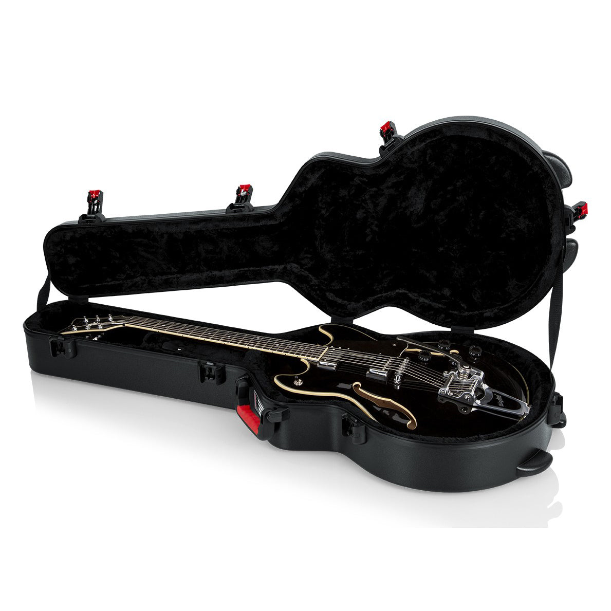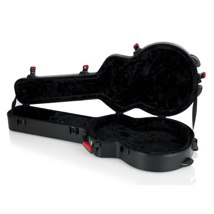 The Gator Cases GTSA series acoustic guitar cases and electric guitar cases are constructed of solid, military grade polyethylene plastic and are built to protect your precious guitar from damage, making this case ideal for air travel. The exterior of the GTSA series guitar case feature a newly designed TSA approved locking latch protected by impact diversion housings. A comfort grip, ergonomically designed injection molded handle provides optimum comfort during transport. The exterior of the GTSA guitar case is designed with a black powder coated continual valance, adding style and structural strength to the cases design. The interior of the GTSA series guitar cases consists of a thick EPS foam nest to protect the guitar. The EPS foam is covered with thick black plush and also includes an extended reach protective neck cradle to secure the guitar into position. The GTSA-GTR335, 335 style semi-hollow electric guitar case interior is, Body Length: 22.5” Body Height: 4.5” Lower Bout Width: 16.5” Middle Bout Width: 11.5” Upper Bout Width: 13” Overall Length: 43” and is design to fit the Gibson 335 and similar body style semi-hollow electric guitars. For a perfect fit, please compare your guitars dimensions with the GTSA- guitar case dimensions provided above. Gator Cases is known for manufacturing innovative products designed to protect! We offer a wide range of products with a variety of available sizes, materials, and protection levels, for all types of instruments and gear including Frameworks stands, Rack works install racks and accessories, and Protector drum cases. It isn’t hard to find a great reason why Gator should be the brand you trust to protect your equipment for life!
