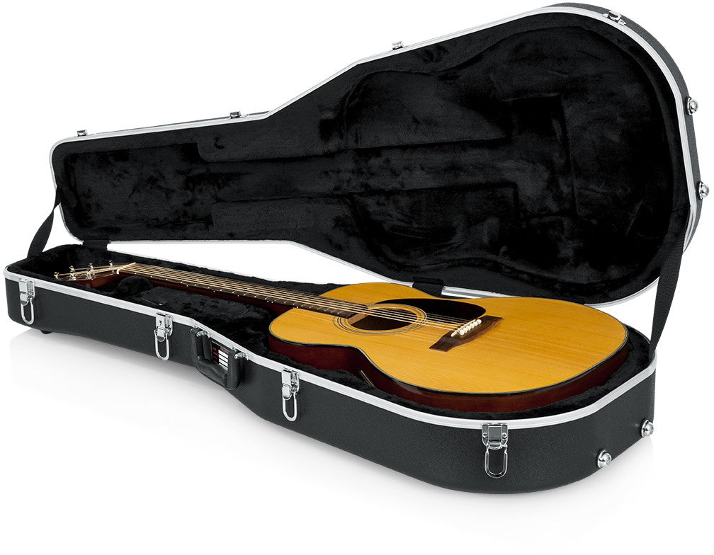 The Gator GCDREAD Deluxe Molded Case is a case for Dreadnought style guitars. It has a Deluxe ABS exterior, heavy duty aluminum valance, bolted handled, and EPS foam protective interior with plush lining. Has a large accessory compartment for capos, tuners, picks etc and chrome plated lockable latches.
