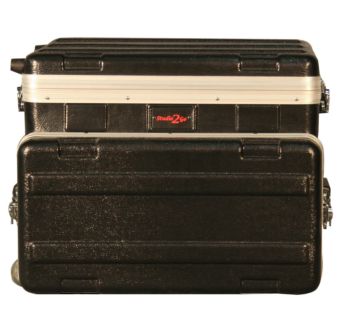 The gator GRCSTUDIO4GOW is not only a Carrying Case for your Laptop but it also carries your 4 Space Rack Mount Equipment all in one package. With wheels and retractable handles, traveling to your gig is now made easy from your friends at Gator. It has a Rugged ATA- style polyethylene construction and an adjustable laptop compartment with no slip web strap tie downs. It also has an access hole between top & bottom compartments allow the laptop to be permanently connected to the recording gear.