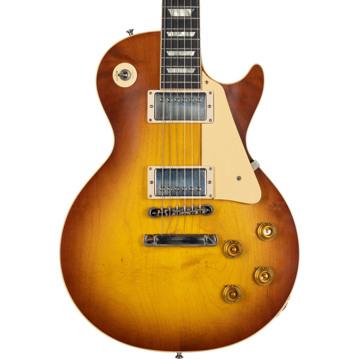 The 1958 Les Paul Standard Reissue features all the painstaking historic construction methods of the famous '59 Reissues with a few historically-accurate spec differences that allow it to stand on its own. Like the 1958 originals, it has narrow frets which help more of the fingerboard wood to be heard in the tone profile. It also has a round, chunky neck profile for a full feel and maximum bending leverage. And finally it has a beautiful plain maple top; each is unique and full of character. Available in a variety of classic sunburst shades.