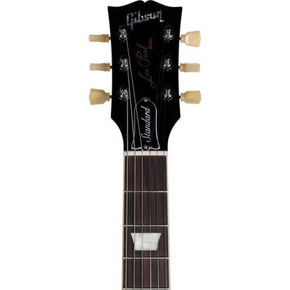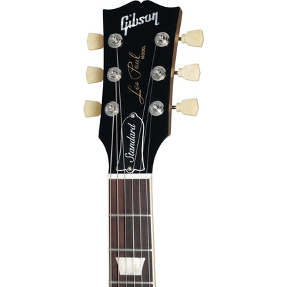 The new Les Paul Standard returns to the classic design that made it famous. It pays tribute to Gibson's Golden Era of innovation and brings authenticity back to life. The Les Paul Standard 50s P-90 has a solid mahogany body with a maple top and a rounded 50s-style mahogany neck with a rosewood fingerboard and trapezoid inlays. It's equipped with an ABR-1, the classic-style Tune-O-Matic™ bridge, an aluminum Stop Bar tailpiece, Vintage Deluxe tuners with Keystone buttons, and Top Hat knobs. The classic P-90 pickups (neck and bridge) are loaded with Alnico 5 magnets, audio taper potentiometers, and Orange Drop® capacitors.