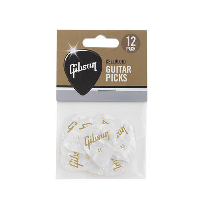Gibson Pearloid White Picks - Medium- 12 Pack