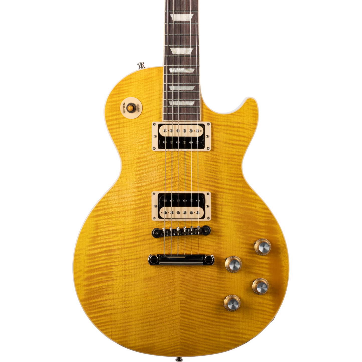A solid mahogany body and AAA flamed maple top form the resonant foundation that has made the Les Paul a classic, while the mahogany neck—featuring a rosewood fingerboard, trapezoid inlays, and a 50s Vintage profile—keeps the feel authentically vintage for comfortable chording and smooth bends. And 22 medium jumbo frets ensure you’ll enjoy precise intonation and easy fretwork at every position.