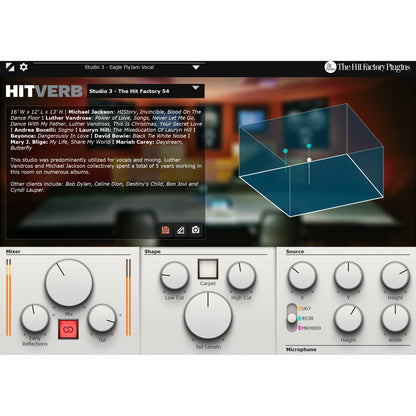- World-class convolution reverb plug-in modeled in twelve legendary Hit Factory studio rooms from all over the world