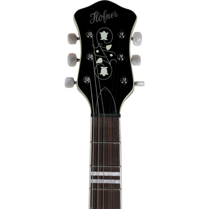 The Hofner Ignition Series Violin Electric Guitar is lightweight and easy to love. It features set-neck construction and a full 25.5" scale. The body is made of flamed maple back & sides with a sweet sounding spruce top. Loud enough for acoustic practice, it really shines when plugged in thanks to two mini humbuckers. Hardware includes a floating rosewood bridge with tune-o-matic top for perfect intonation and vintage style tuning machines.