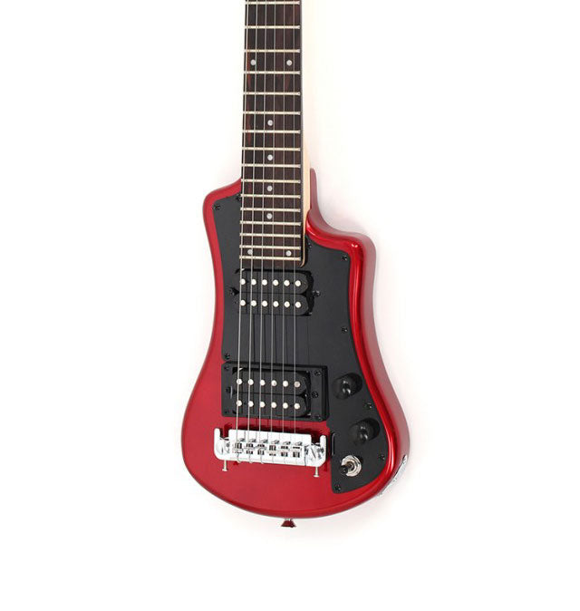 Product Name Hofner Shorty Deluxe 2 Humbucker Travel Electric Guitar in Red with Gig Bag