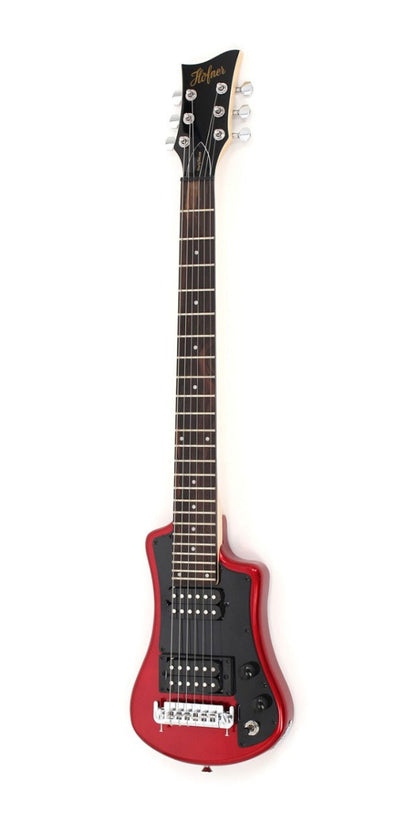 Hofner Shorty Deluxe 2 Humbucker Travel Electric Guitar in Red with Gig Bag