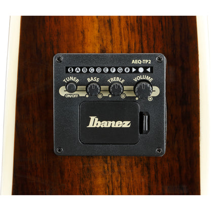 - Ibanez AEQ-TP2 preamp w/Onboard tuner - The Ibanez AEQ-TP2 preamp provides the extra punch of on-board EQ along with a convenient and easy-to-read digital tuner and 2-band EQ, located on the instrument’s upper bout.