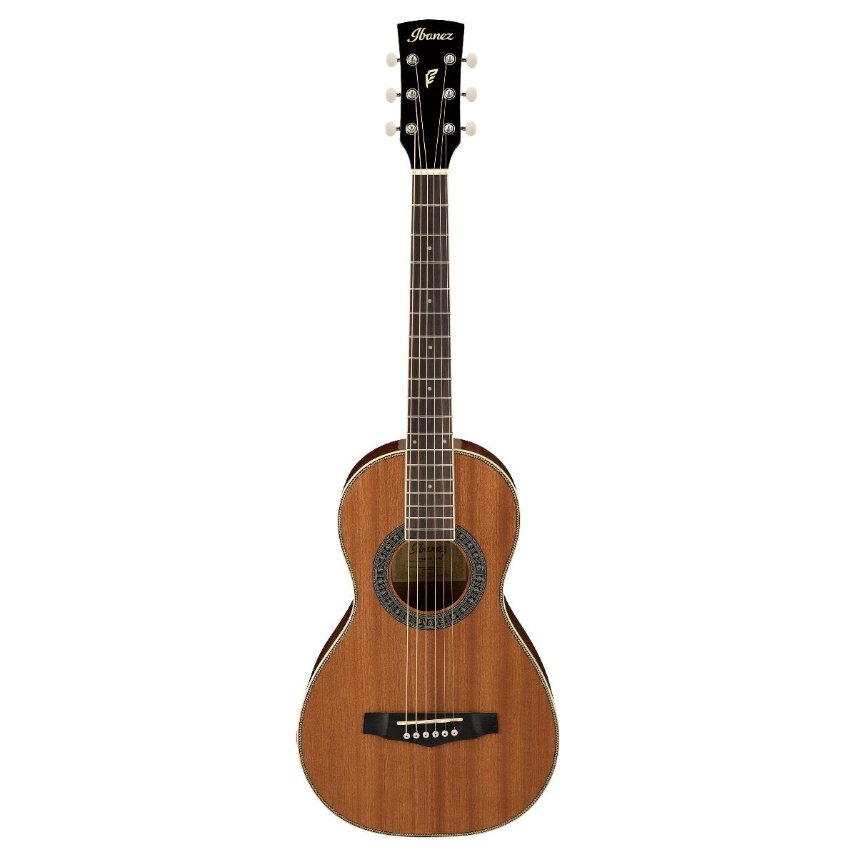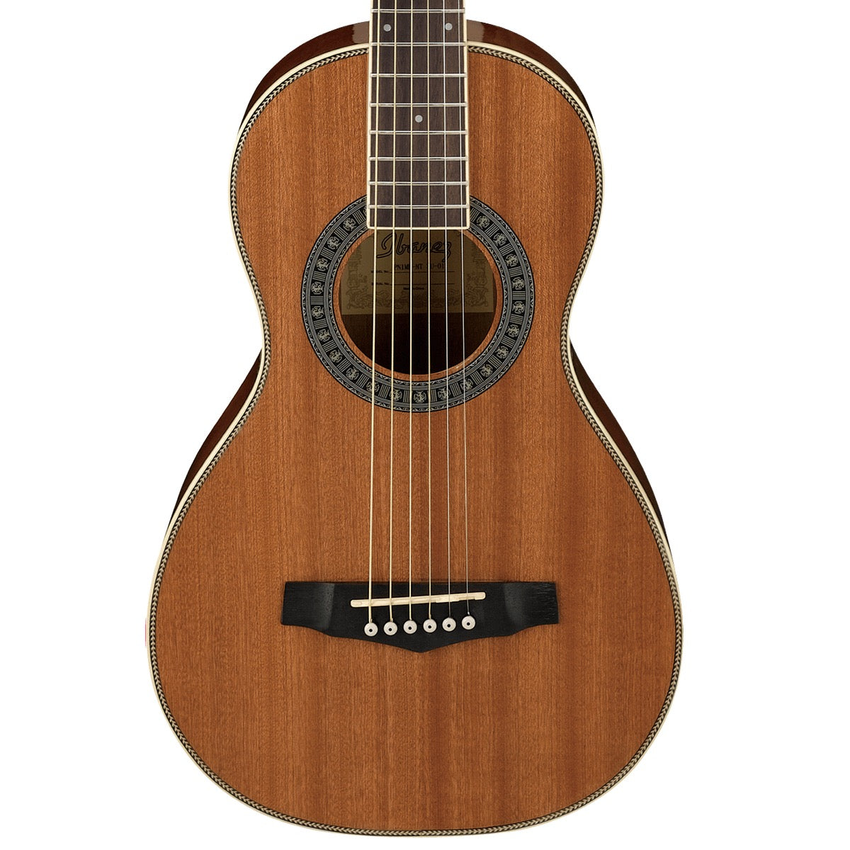 With Ibanez's Performance guitars, you get professional features, quality, and great sound at extremely inexpensive prices backed by the Ibanez name and quality. This parlor also features a mahogany neck, rosewood fingerboard and bridge, herringbone purling, chrome open gear tuners with ivory knobs, and Ibanez Advantage Bridge pins.