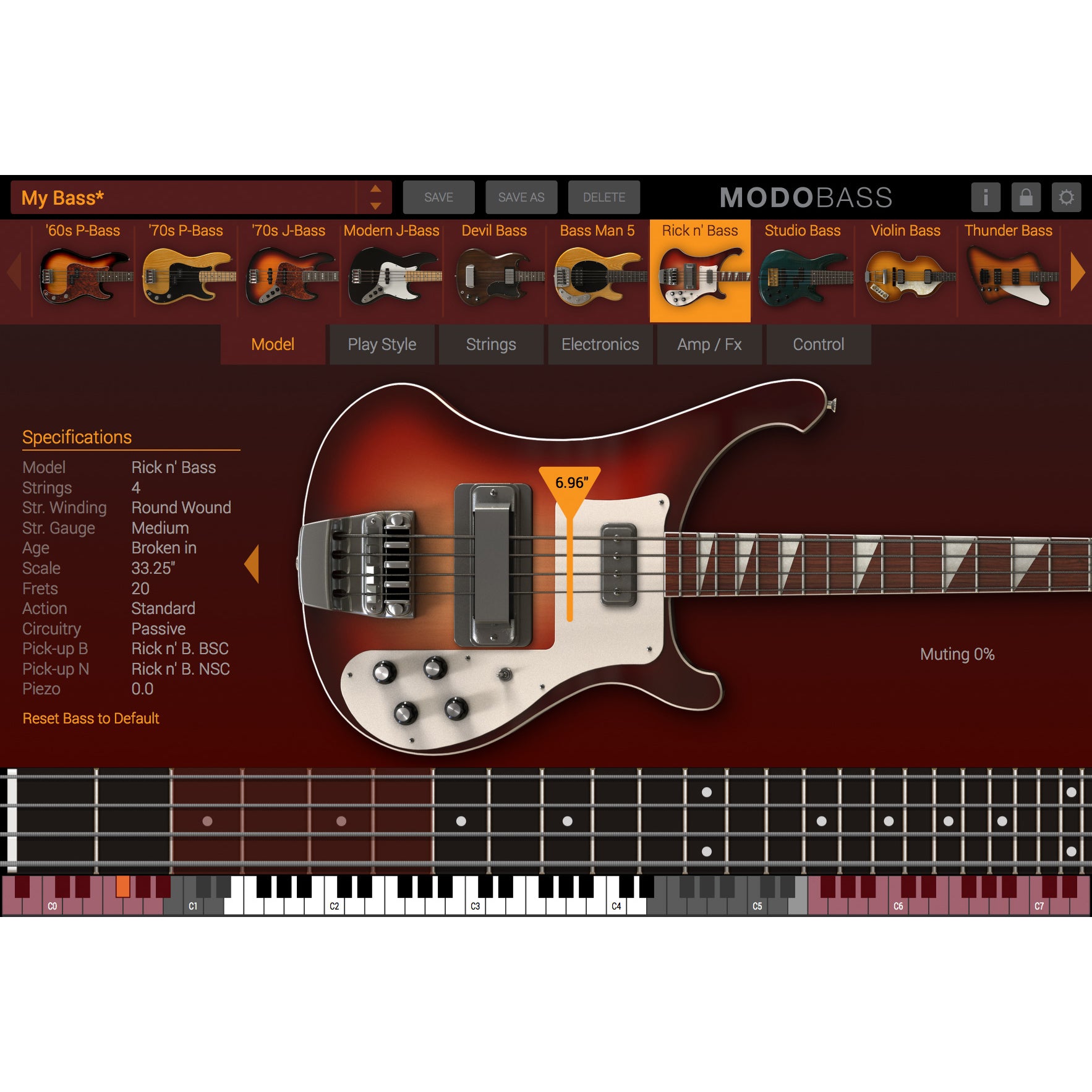 MODO BASS is a complete synthesis of bass playing and as such it lets you adjust and select virtually every aspect of bass playing. This means that MODO BASS can give you a limitless variety of bass sounds because, just like a real bass player, it gives you a different performance every time. With MODO BASS, you take unprecedented control of every aspect and control of a performance.