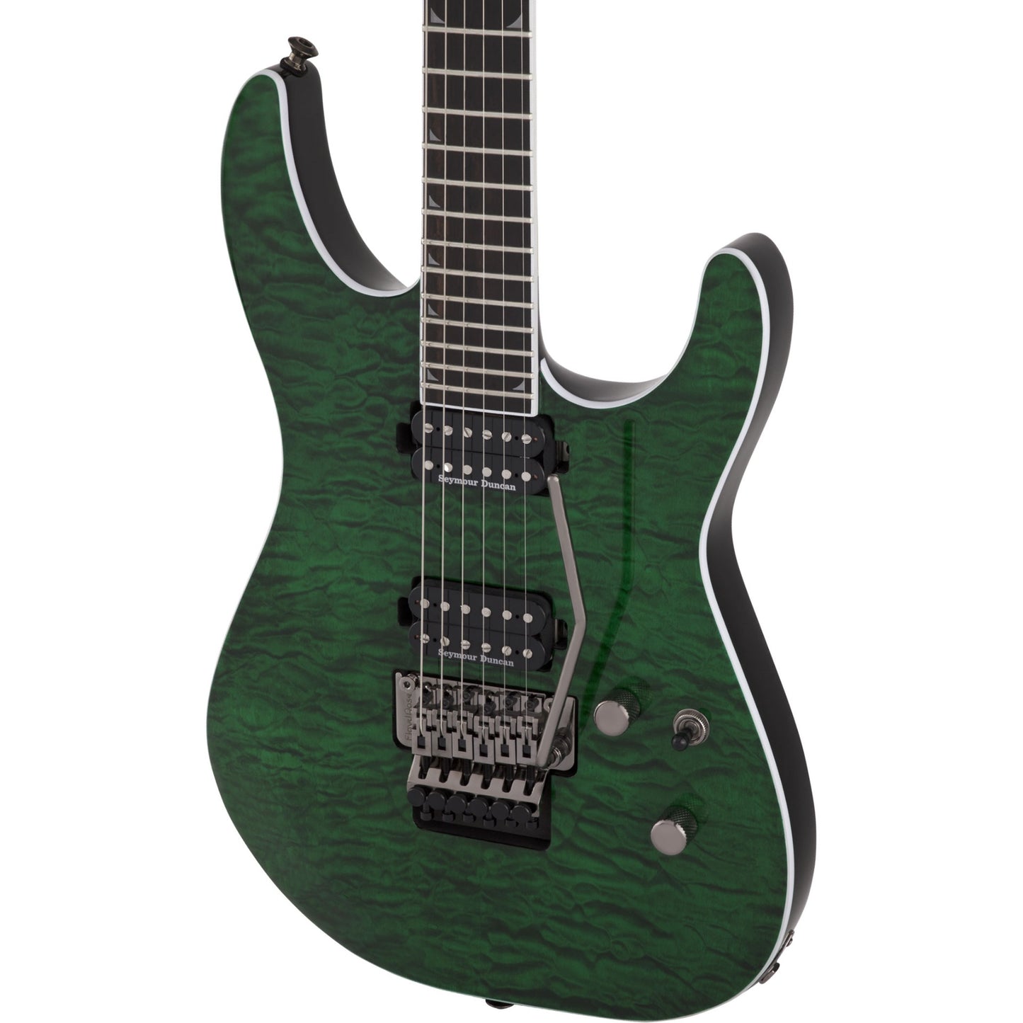 Chosen specifically for their complementary sound, modern Seymour Duncan® Distortion TB-6 and SH-6N humbucking pickups drive this guitar’s voice, combining for highly balanced, flexible tone, with plenty of high output for pristine cleans and snarling distortion. Single volume and tone controls shape the pickups’ output, which can be further refined with the three-way toggle switch for the precise voice required to bring your musical vision to life. Dive and soar expressively with the Floyd Rose® 1000 Series double-locking tremolo system, recessed for pick hand comfort and providing laser-accurate intonation and ultra-stable tuning.